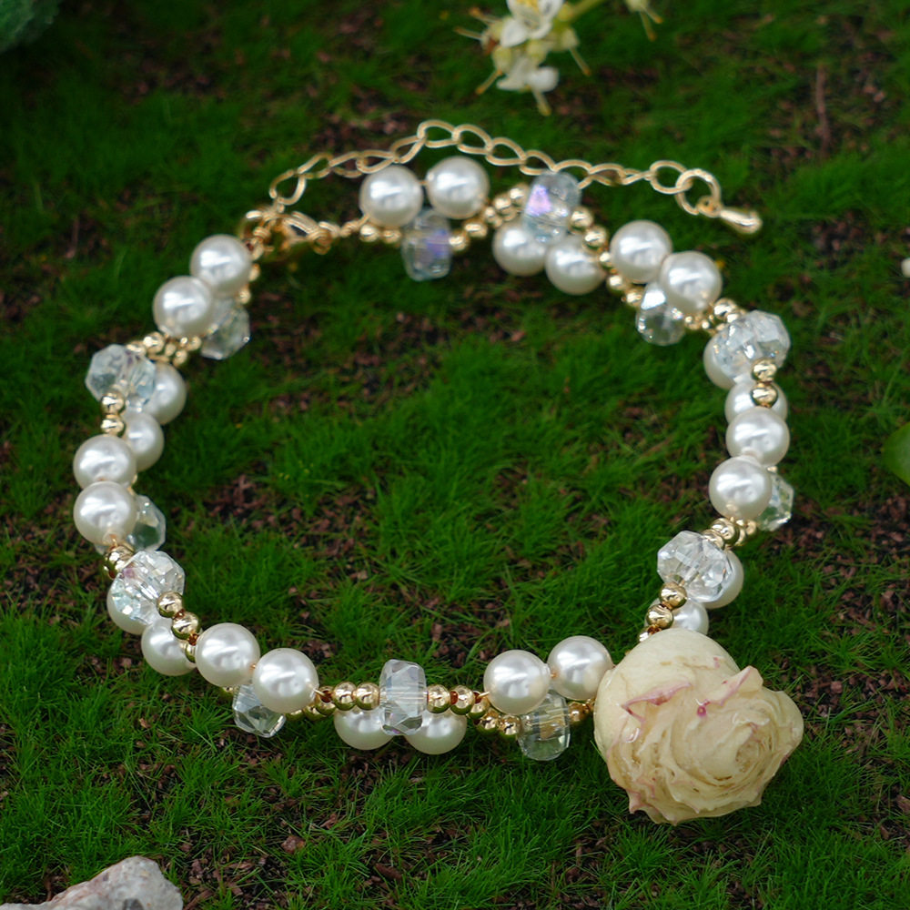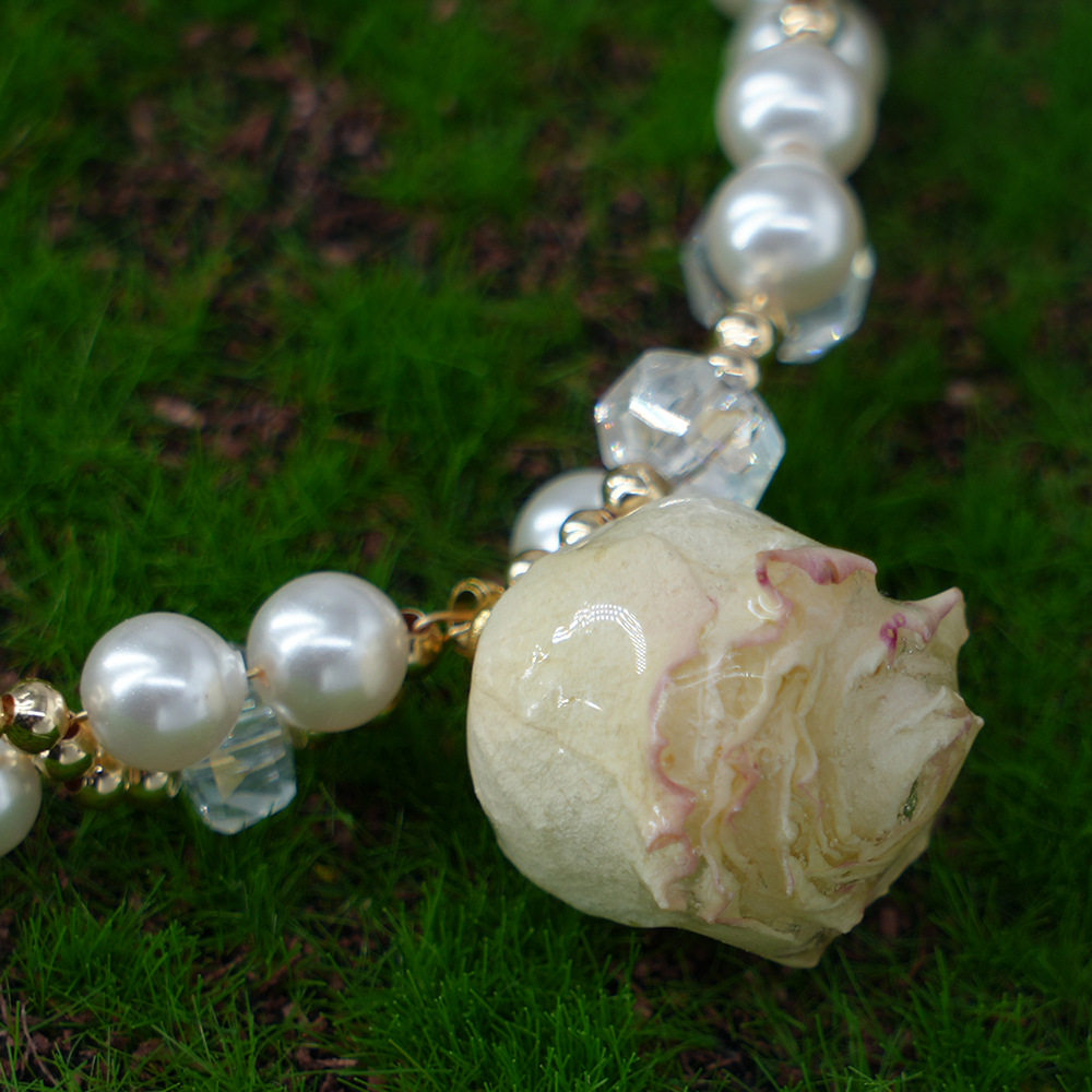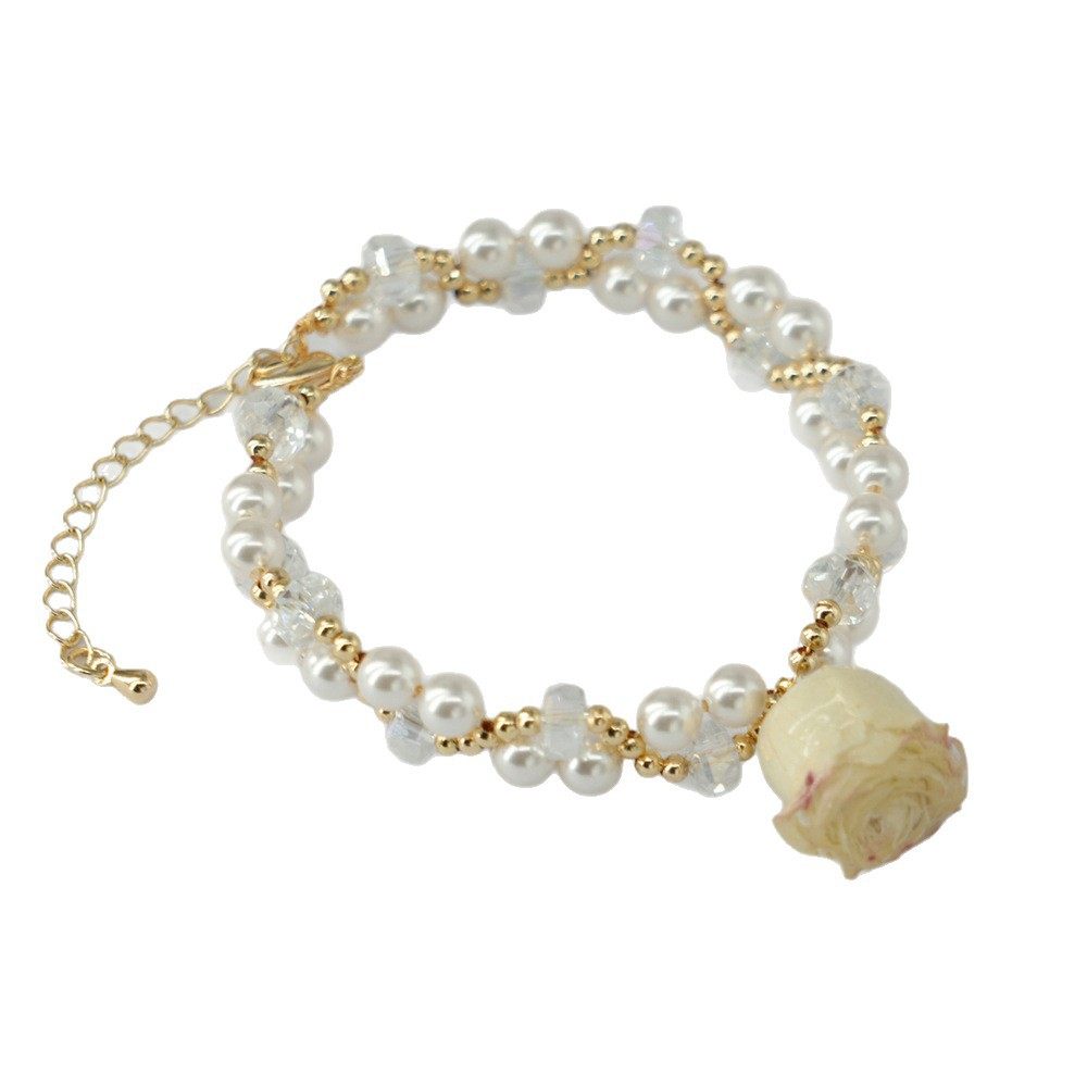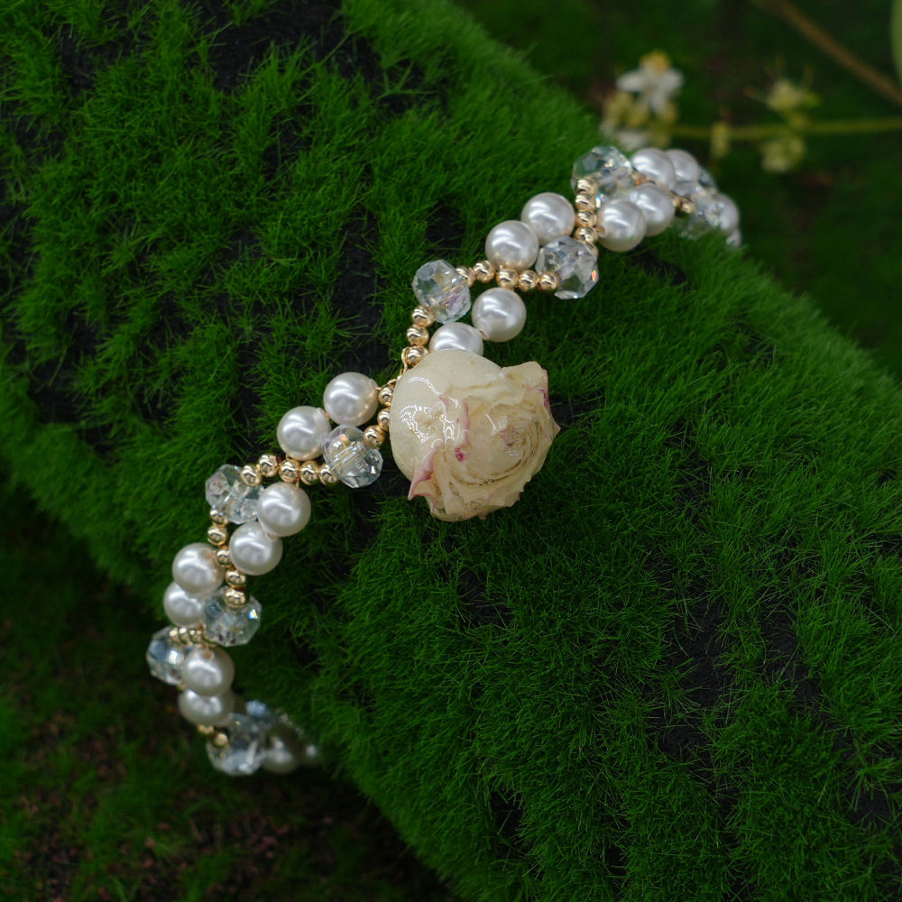 📚 手工原创天然玫瑰真花手链滴胶白玫瑰珍珠手串可爱自然风清新手饰