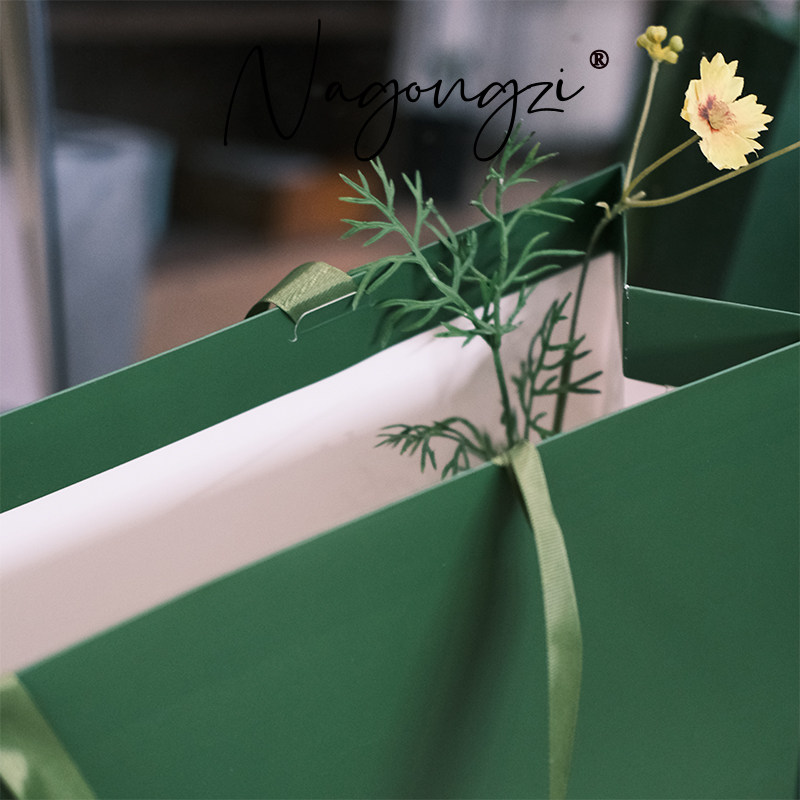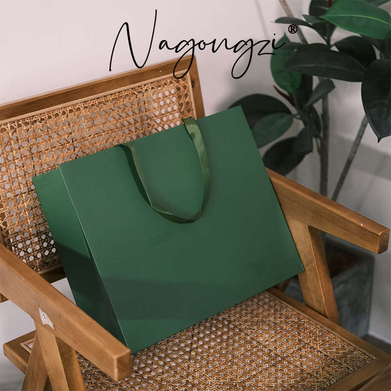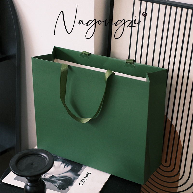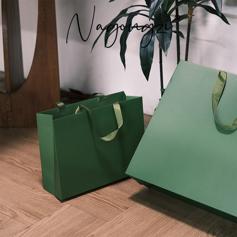📚 无腰线墨绿色手提袋定制logo服装店纸袋化妆品礼物袋购物袋礼品袋