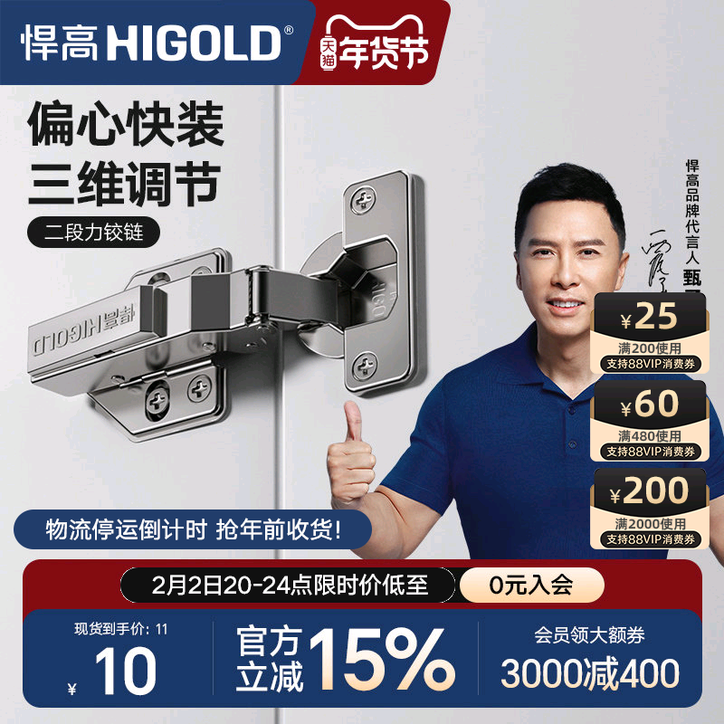 📚 HIGOLD/悍高 二段力铰链橱柜衣柜门厨房卧室合页阻尼缓冲门铰链