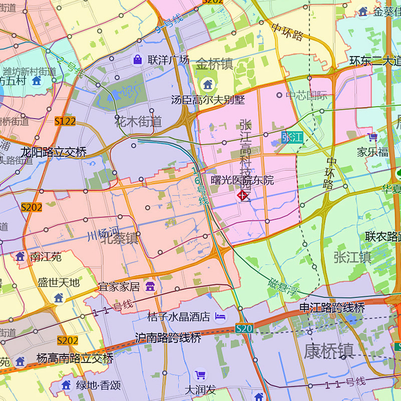 📚 浦东新区地图批零90cm高清贴图上海市新款行政交通区域颜色划分