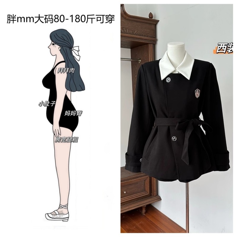 📚 秋季韩剧女主财阀富家千金小个子大码胖mm收腰外套短裤学院风套装