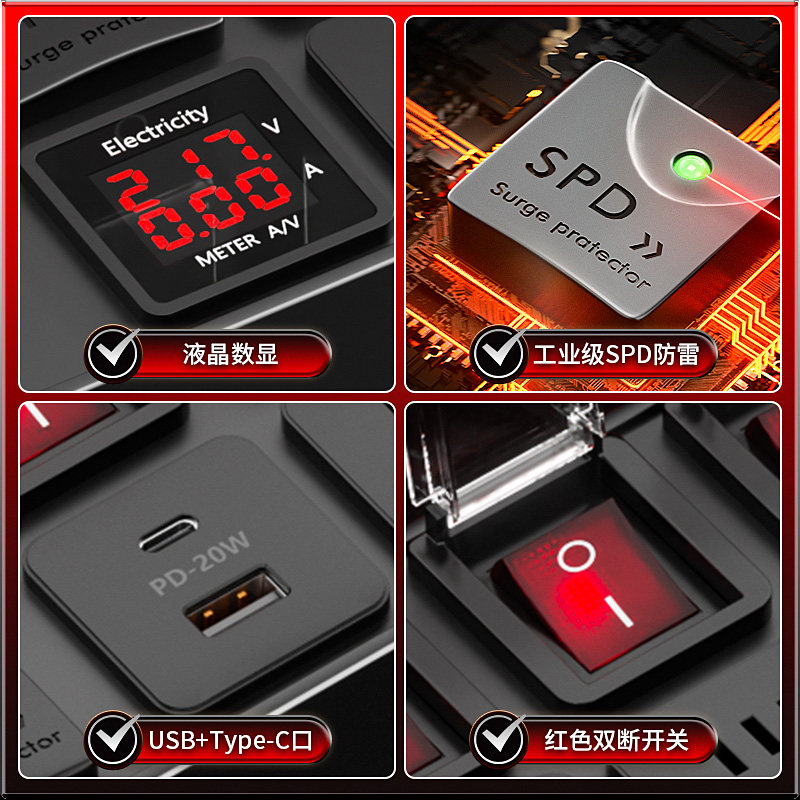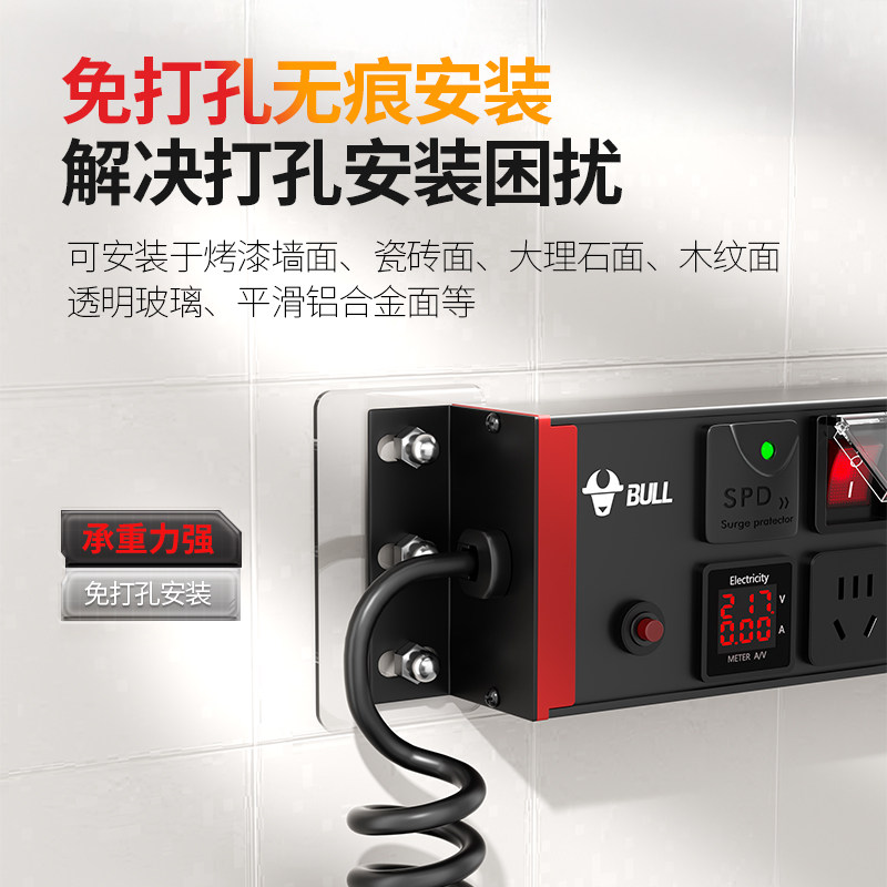 📚 公牛鱼缸专用插排漏电保护上墙面排插独立开关多插孔海缸插座数显