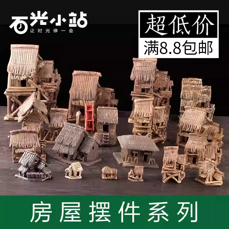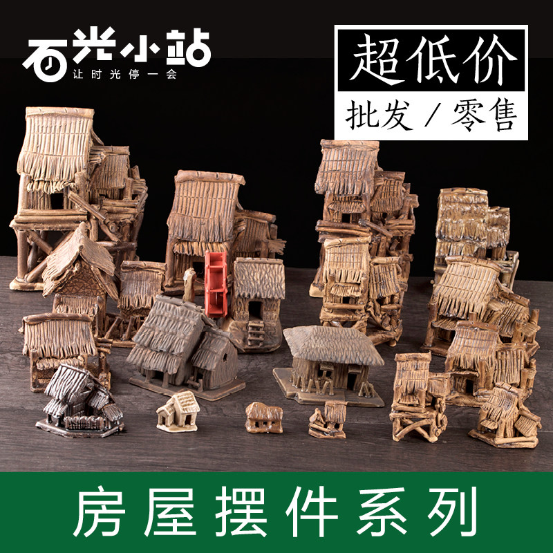 📚 上水石吸水石假山盆景小屋房屋房子茅屋 微景观多肉装饰陶瓷摆件