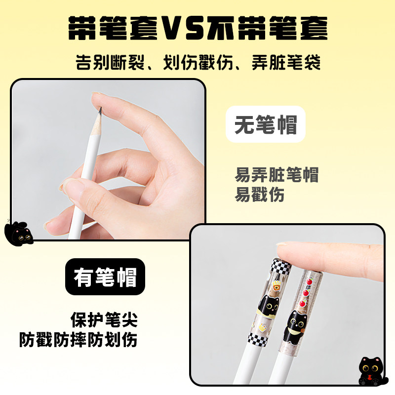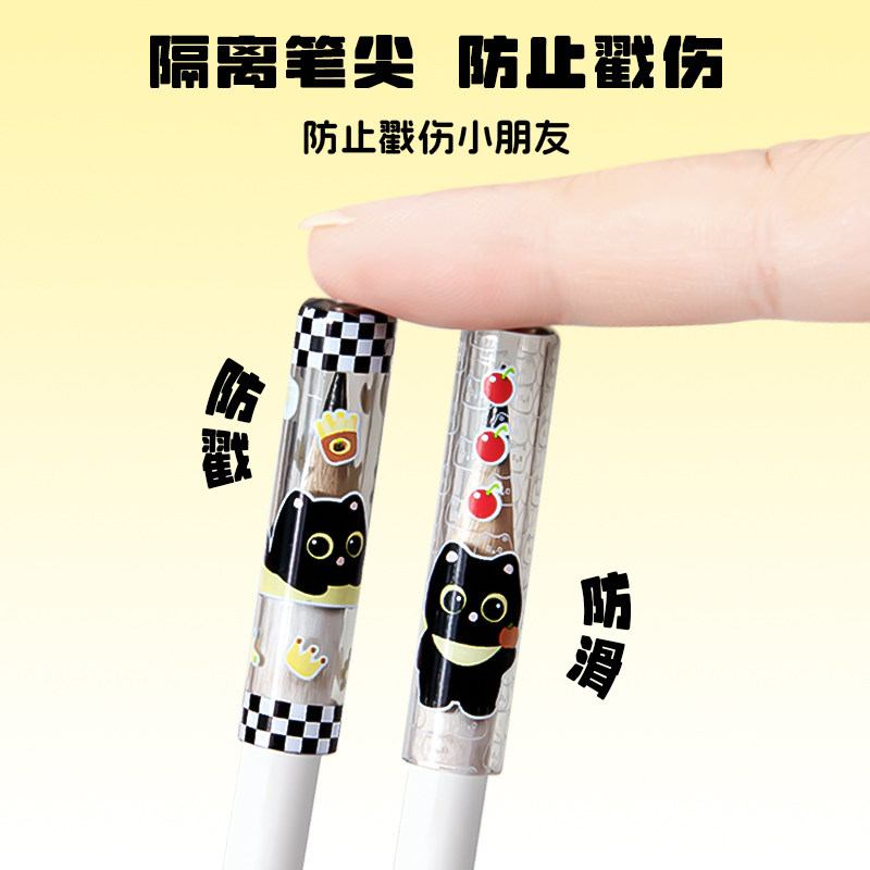 📚 喵呜碳铅笔帽三角洞洞铅笔握笔器一二年级小学生专用卡通延长器笔盖高颜值ins儿童铅笔头保护套防摔防戳笔套