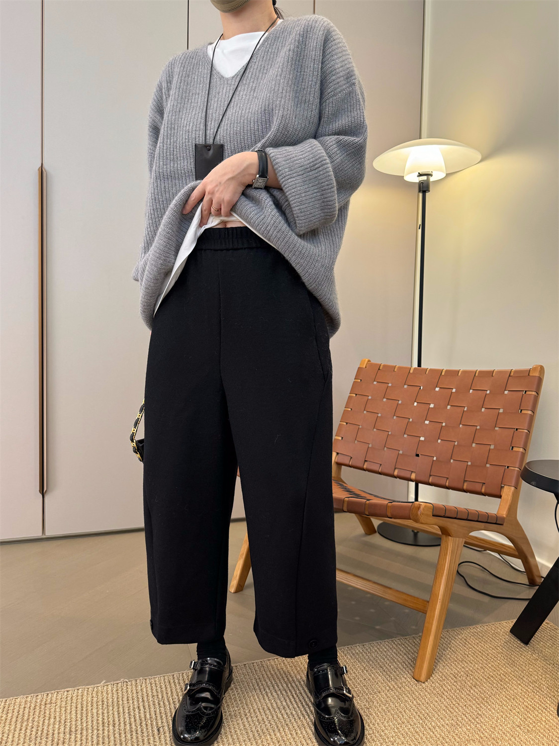 📚 MKDesign 冬季新品 松紧腰休闲羊毛哈伦8分靴裤哈伦裤西装裤
