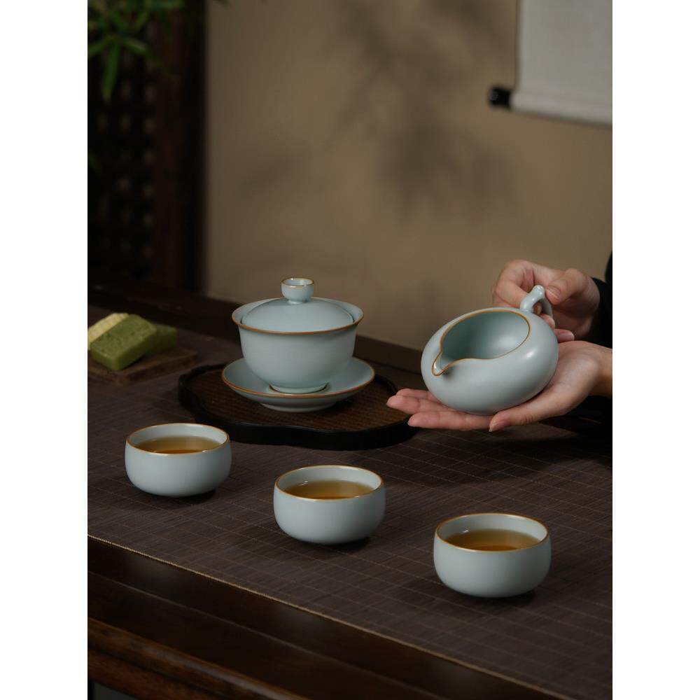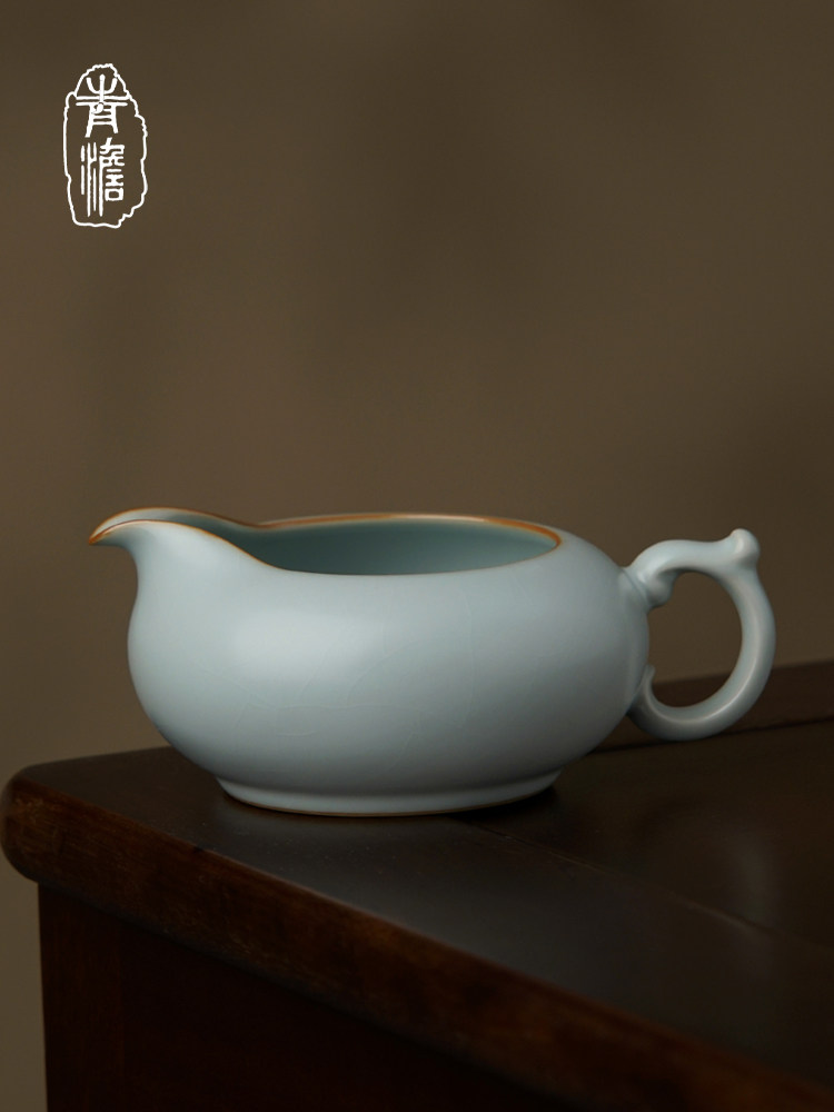 📚 汝窑公道杯大号分茶器陶瓷茶海景德镇覆古手工青瓷礼盒装玉龙茶海
