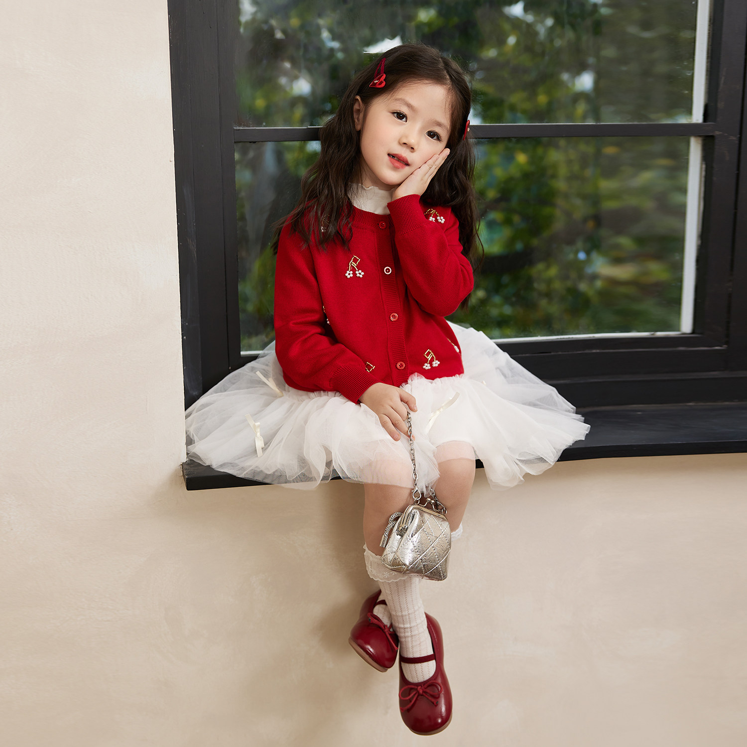 📚 小O宝Okids童装宝宝红色开衫毛衣女新年2025春季新款婴儿过年战袍