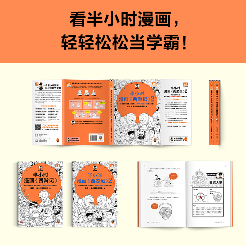📚 【混知官方】【赠九九八十一难线路图+闪卡*2】半小时漫画西游记1-2(全2册) 孙悟空的取经路就是孩子从淘气叛逆到勇于担当的成长路