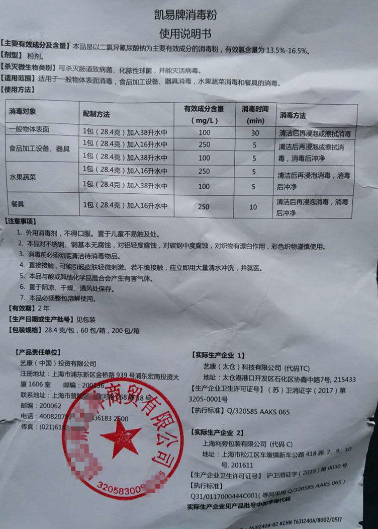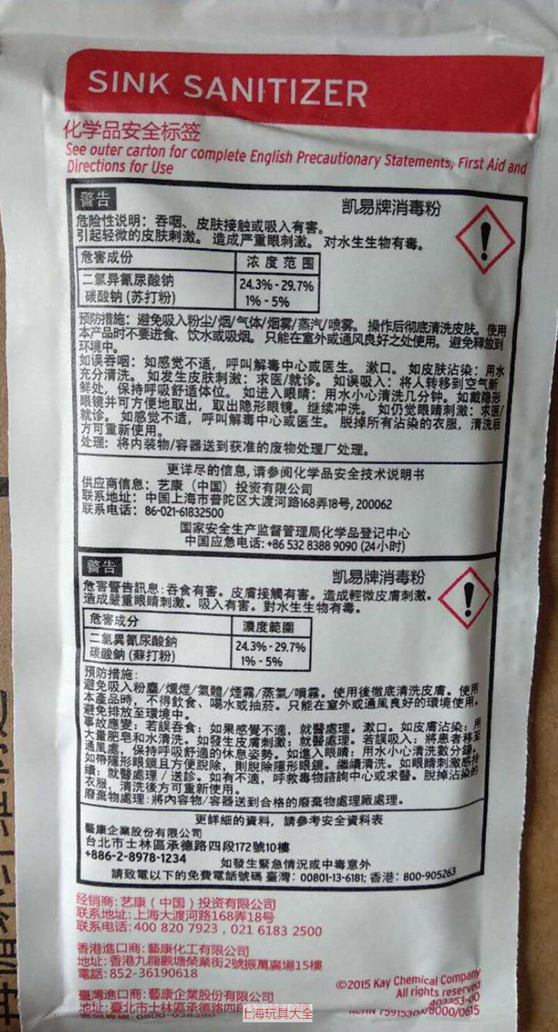📚 肯德基MC凯易牌含氯消毒粉果蔬厨房抹布水槽专用红色消毒粉红袋