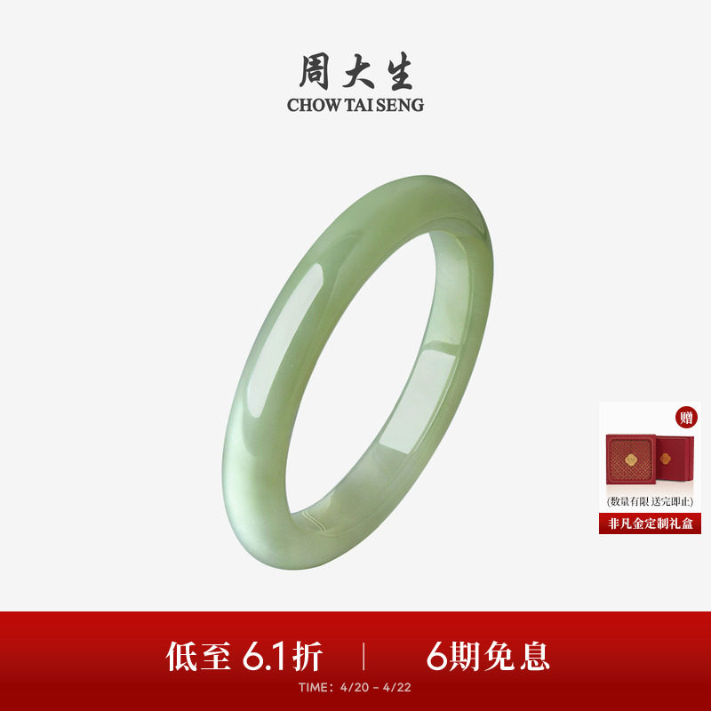 📚 周大生天然和田玉手镯青玉镯子女款清川新中式平安镯生日礼物女生