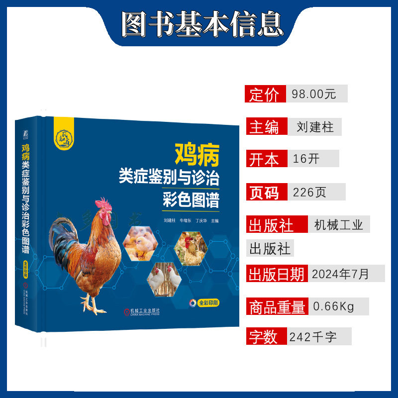 📚 鸡病类症鉴别与诊治彩色图谱 刘建柱 牛绪东 丁庆华 禽病诊治彩色图谱 家禽养殖技术看图识病 综合防治 9787111760603