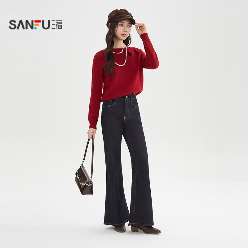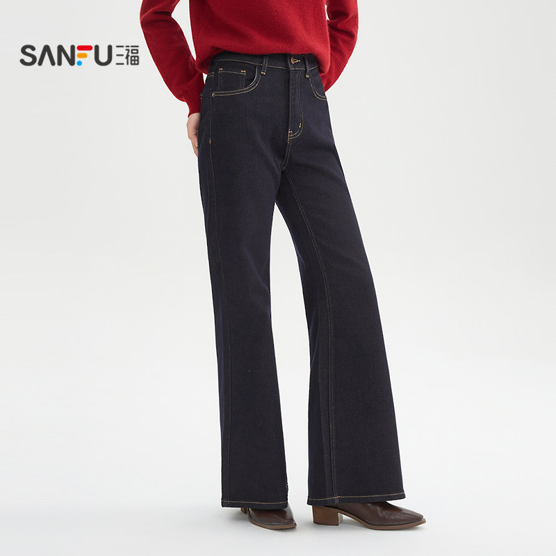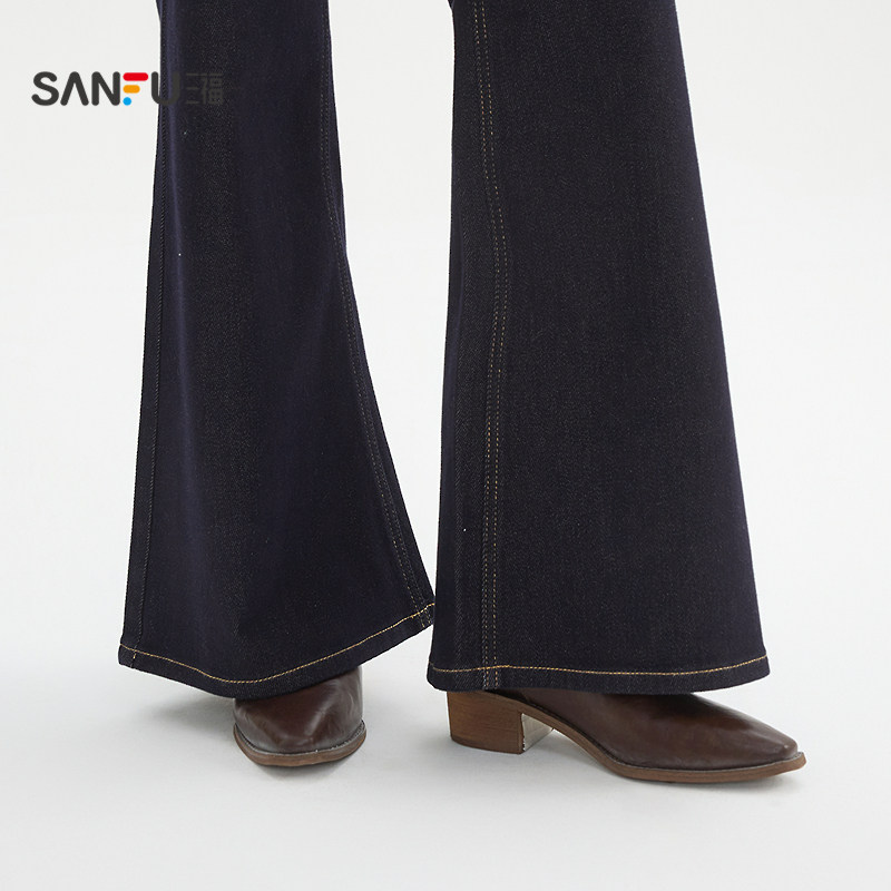 📚 三福牛仔长裤2026春季纽扣腰头宽阔喇叭裤脚裤子女装514404