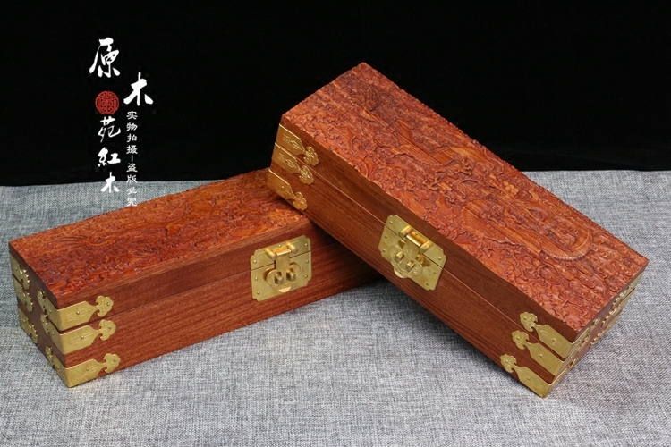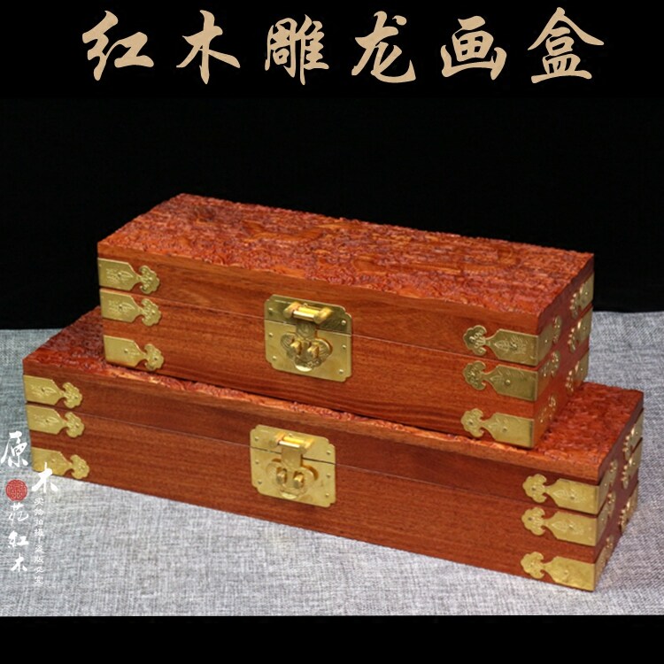 📚 红木盒子香花梨画盒长方形画卷收纳盒实木木箱玉器石头盒子首饰盒