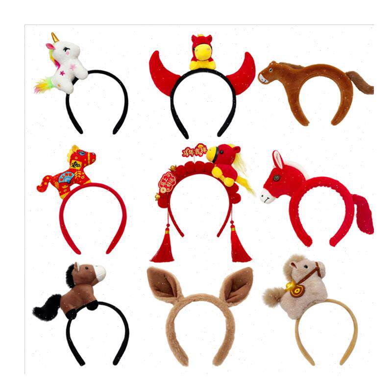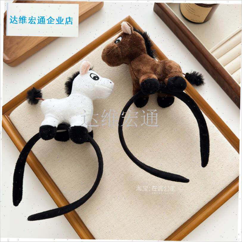 📚 年新年头饰小马发箍马耳朵头箍洗脸搞怪发卡跨年卡通Z牛马发饰女.