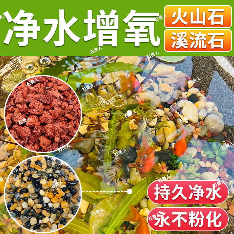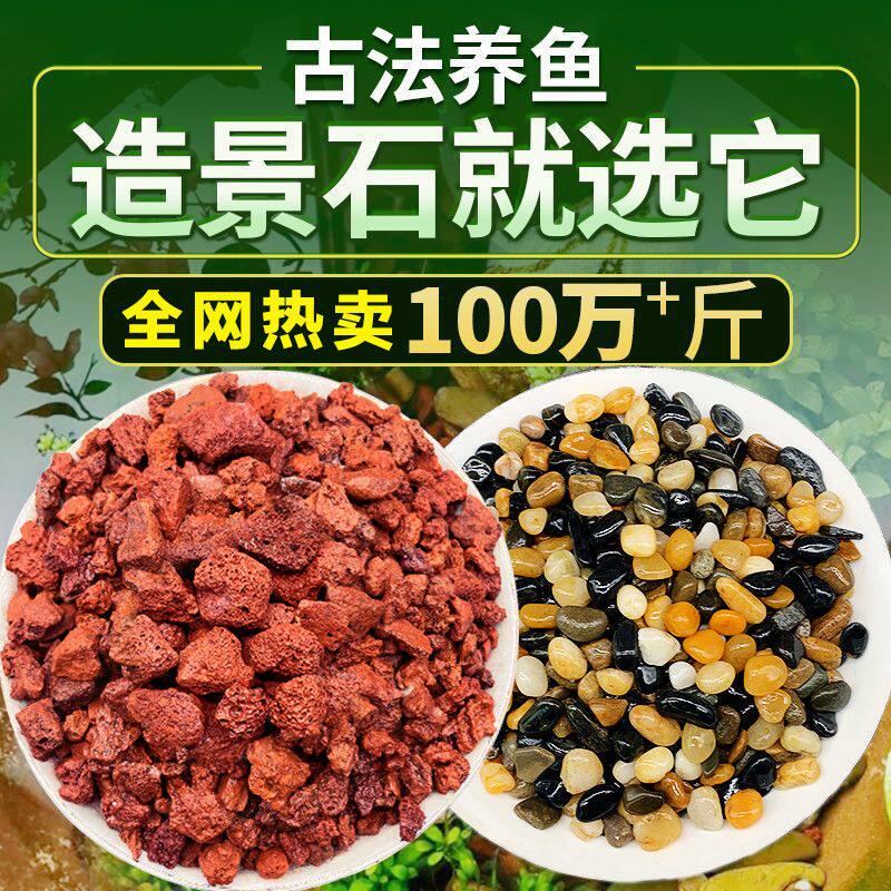 📚 鱼缸造景天然摆件火山石溪流石底部砂石装饰古法养鱼材料专用全套