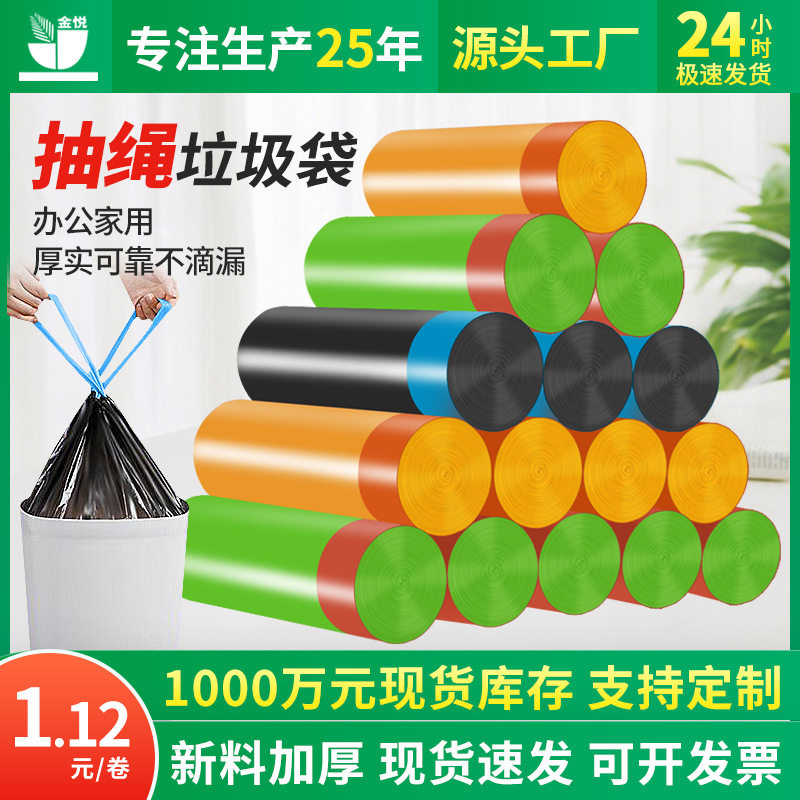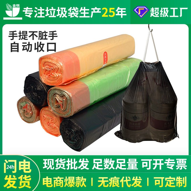 📚 抽绳垃圾袋家用厨房加厚手提式一次性塑料袋自动收口拉绳垃圾袋