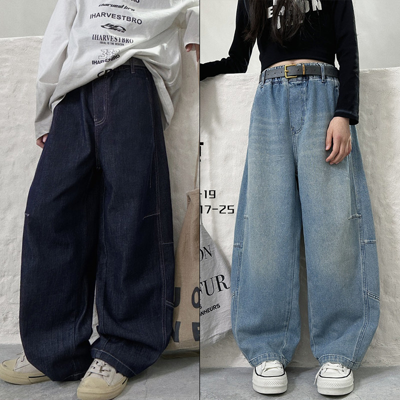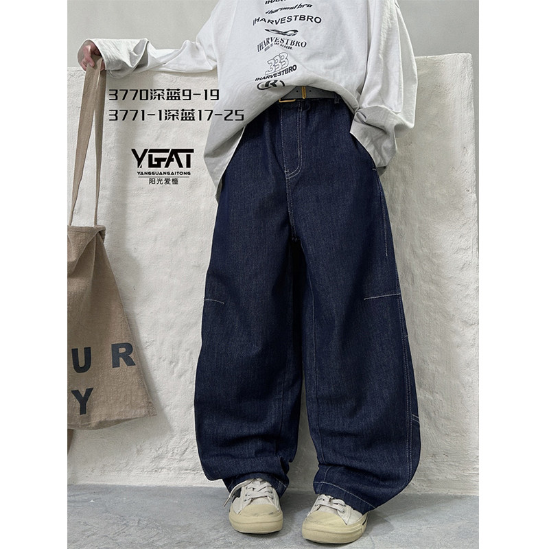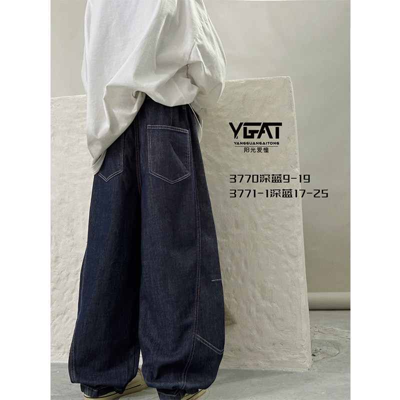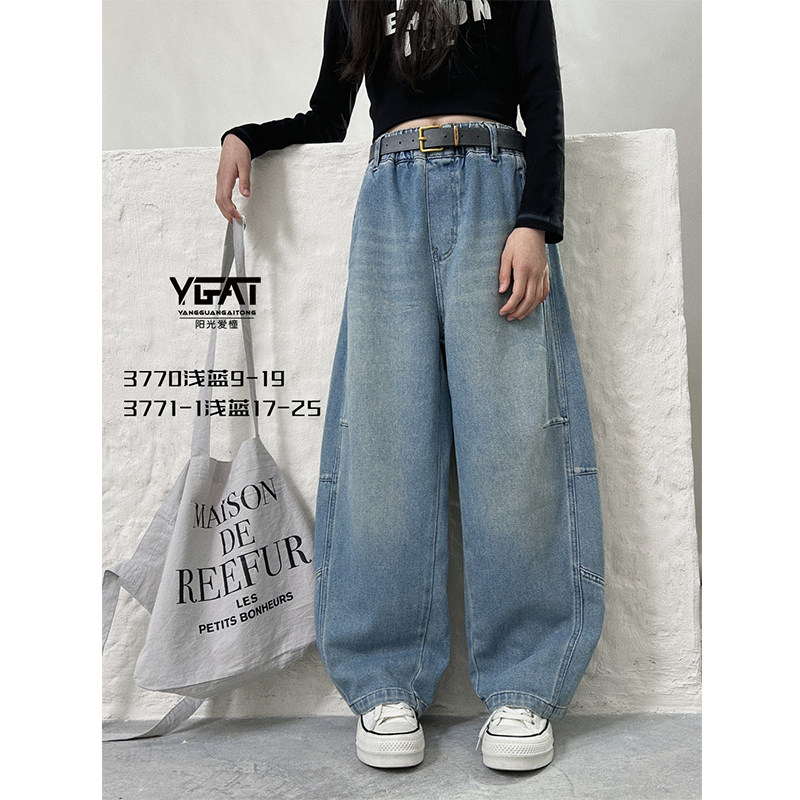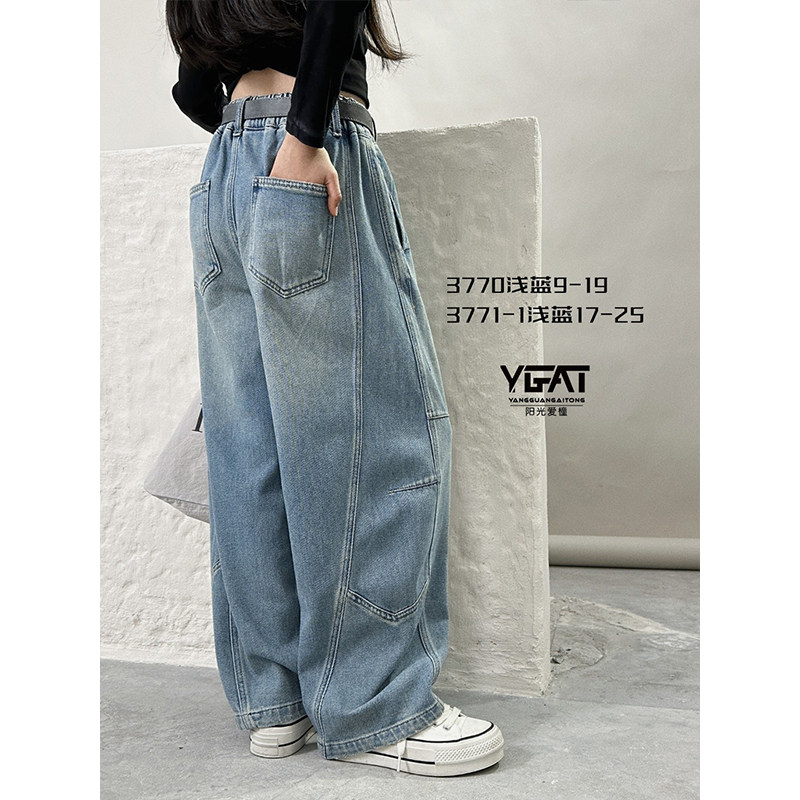 📚 阳光爱橦童装2025春新款男女童拼接弯刀阔腿牛仔裤中大童长裤3770