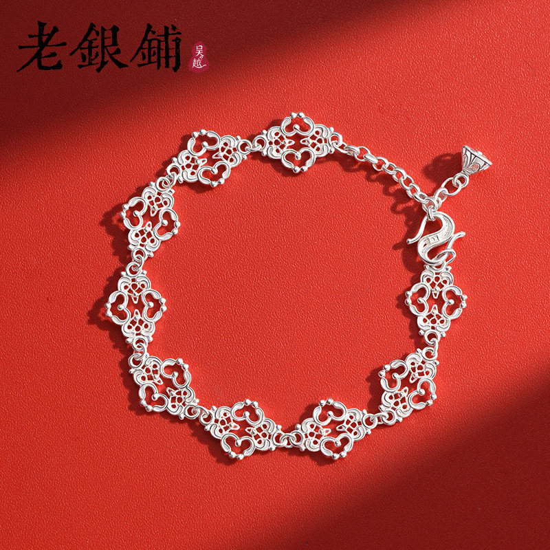 📚 吴越老银铺纯银镂空花丝手链女款宫廷典雅雕花手串精致设计感手饰