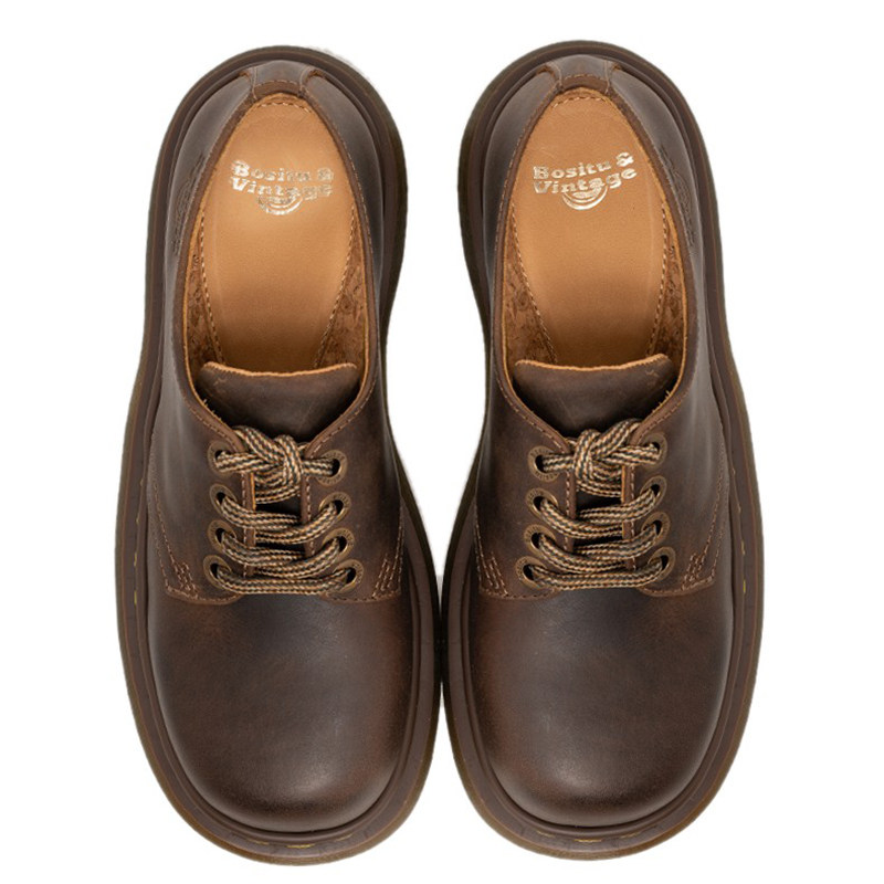 📚 英伦风厚底秋冬小皮鞋古着2025新款美式复古4孔疯马皮马丁单鞋女