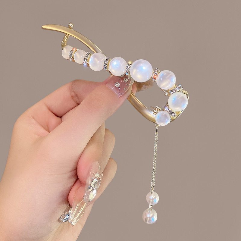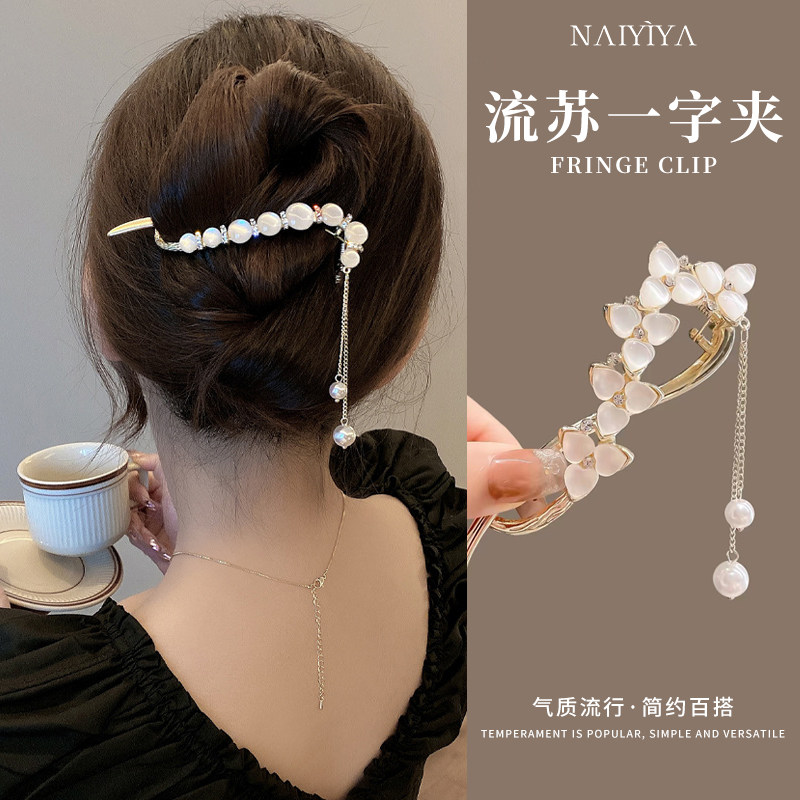 📚 气质流苏一字夹珍珠精致后脑勺抓夹女高级感发夹头饰2026新款高端