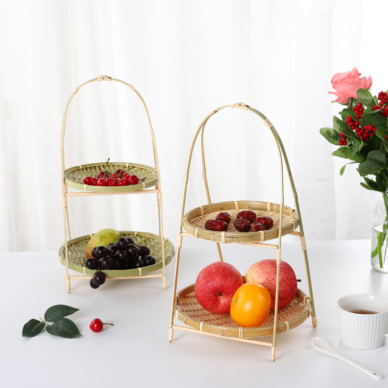 📚 竹编双层三层果盘干果篮茶道水果盘茶点篮竹盘点心手工竹篮竹制品