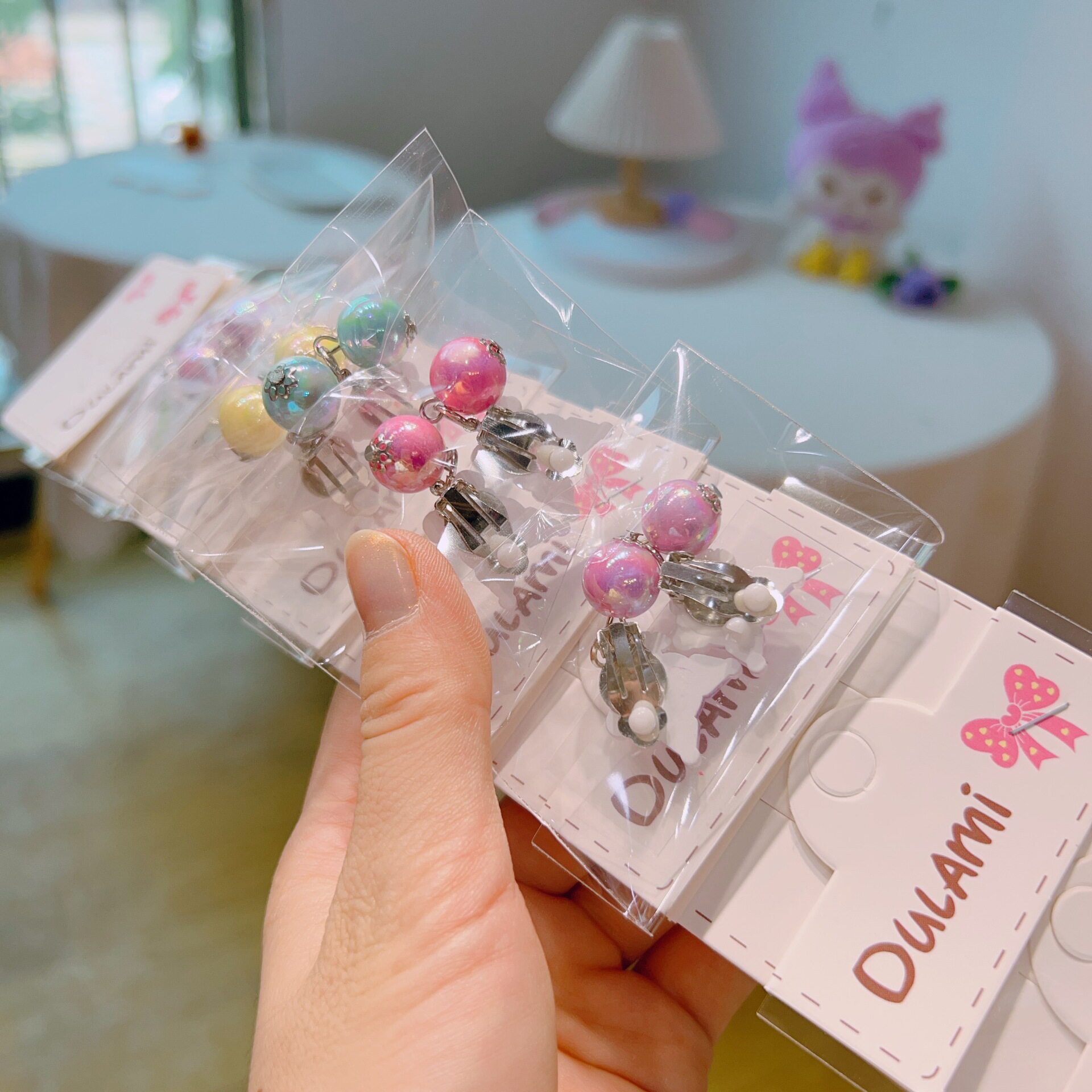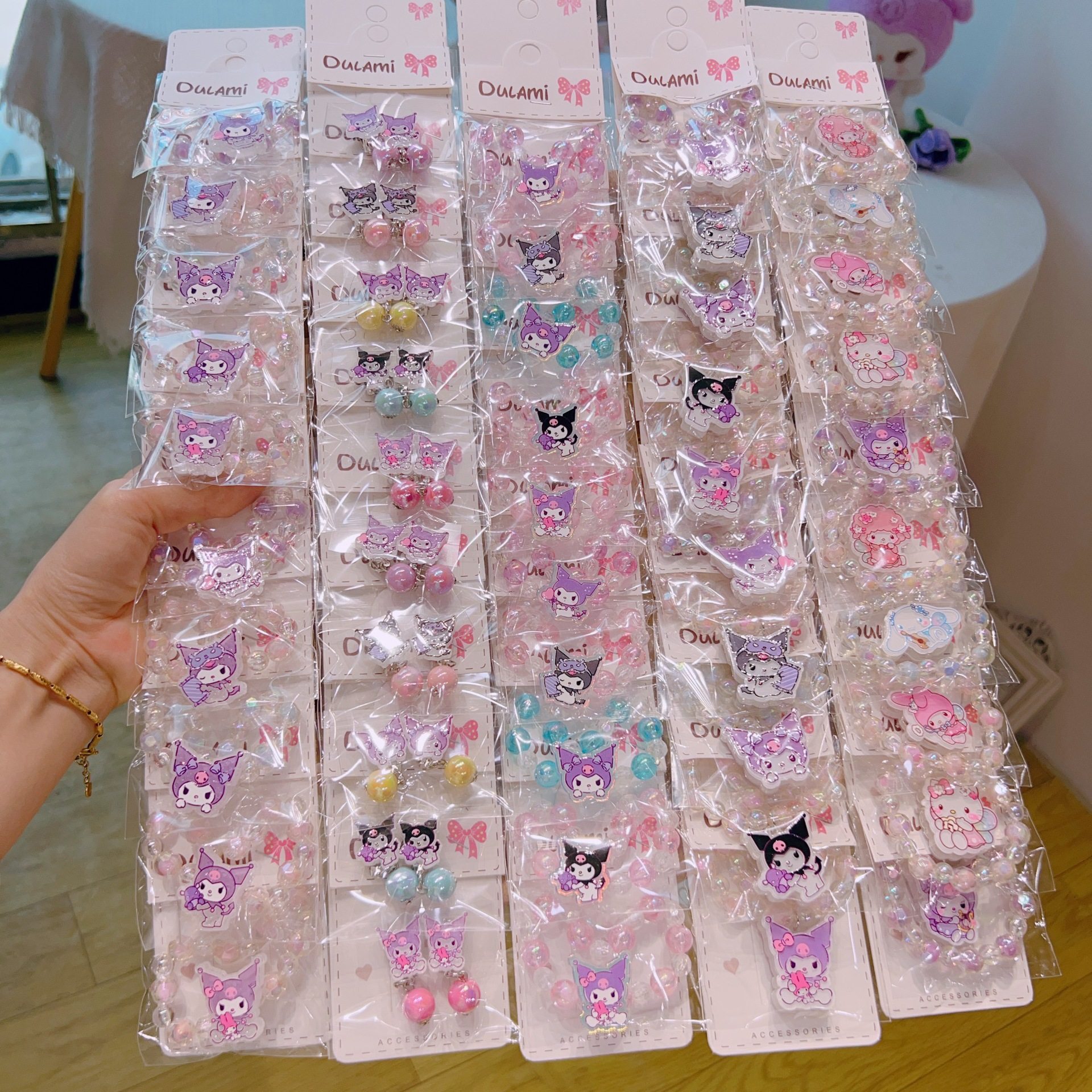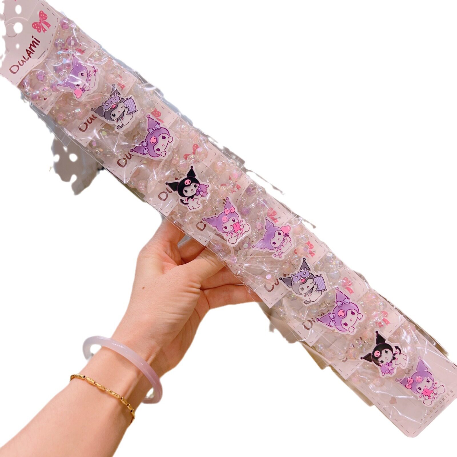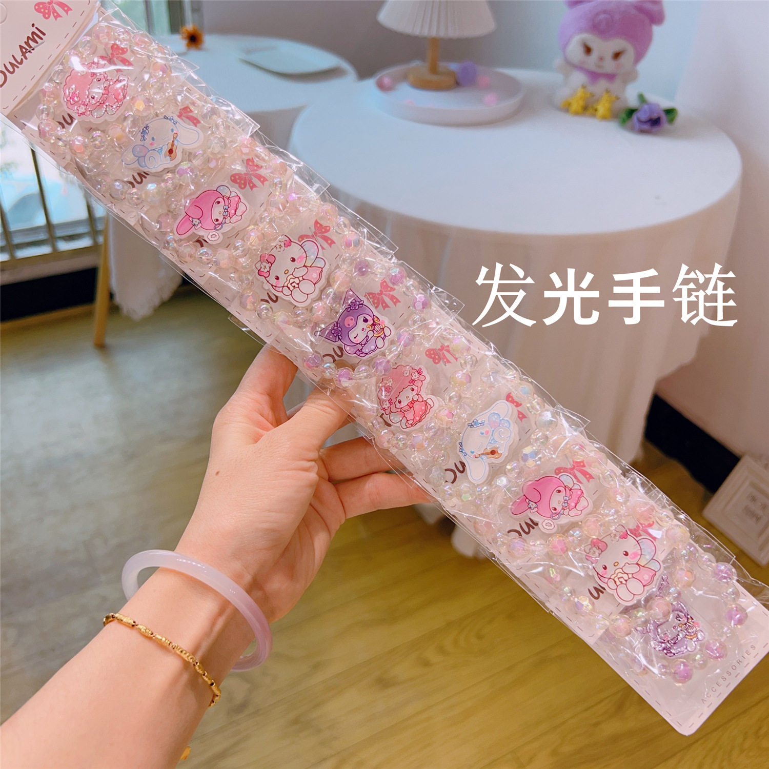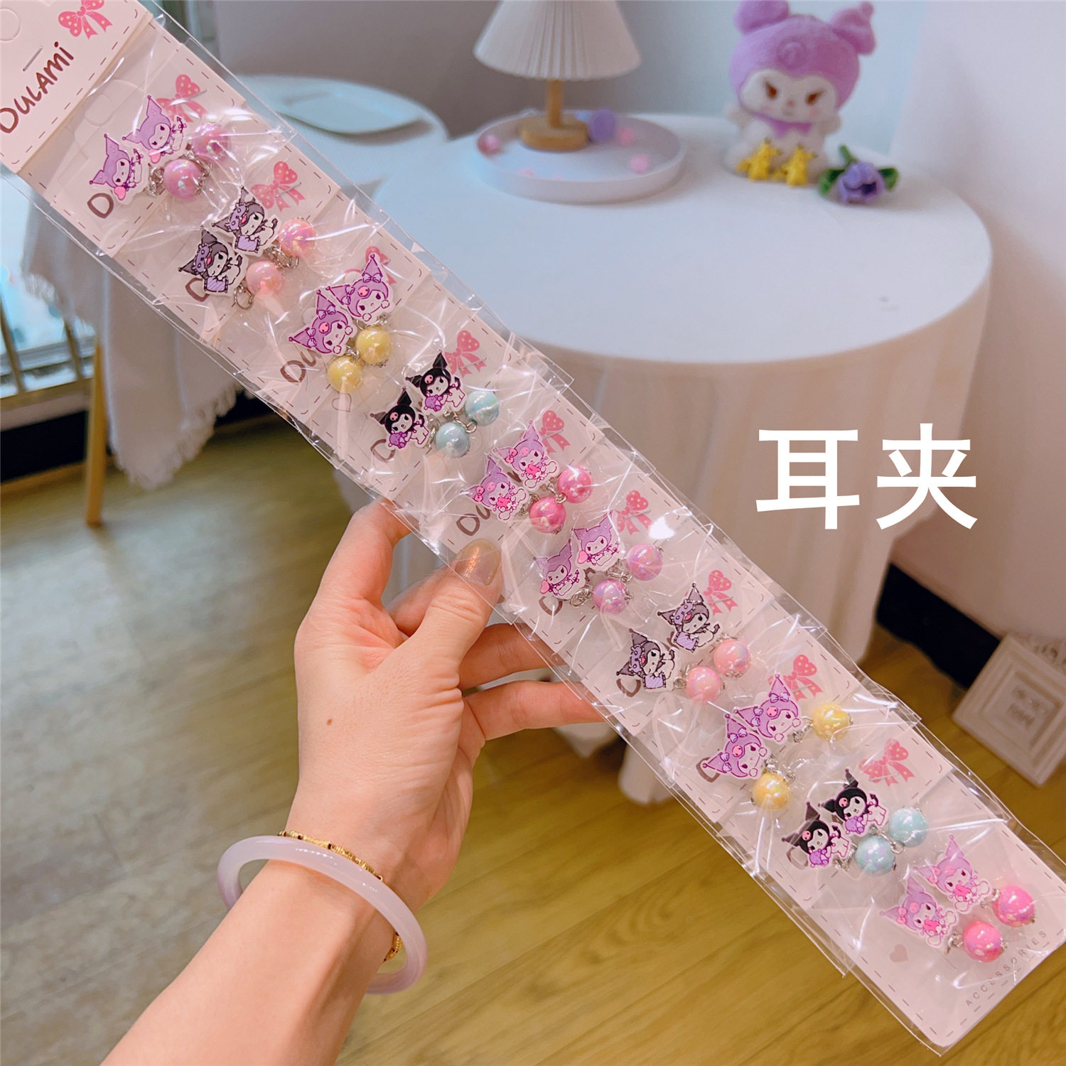 📚 10个女童库洛米可爱宝宝卡通手链耳夹发光高弹性晶透珠儿童手饰品