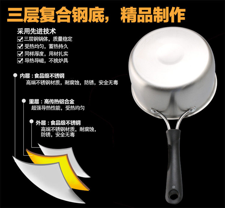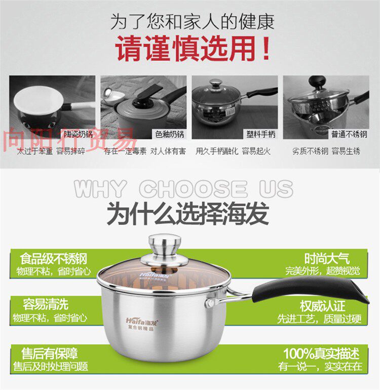 📚 海发不锈钢热奶辅食奶锅不粘锅加厚复底煮面汤锅电磁炉通用小锅