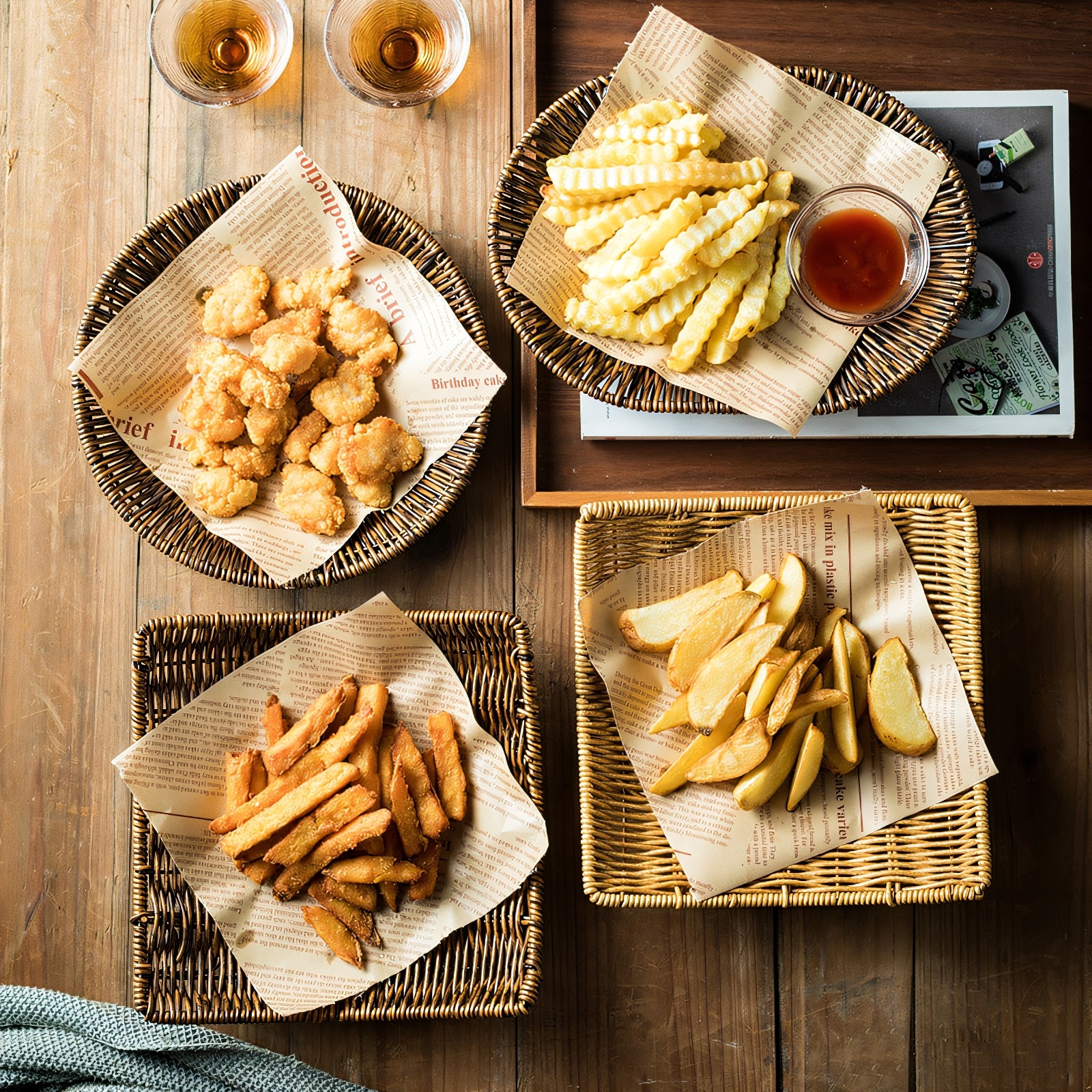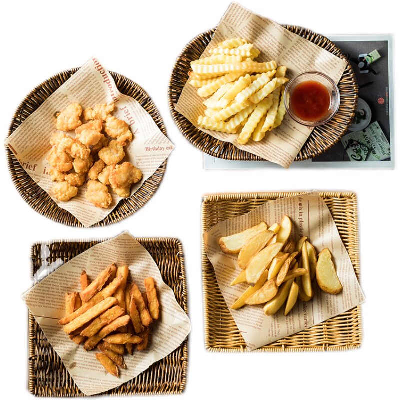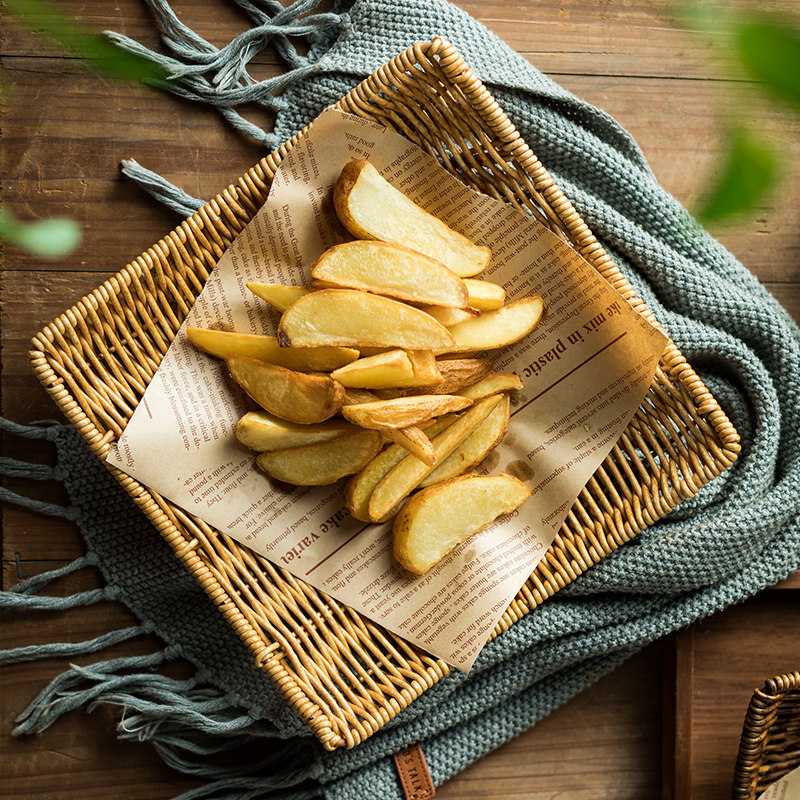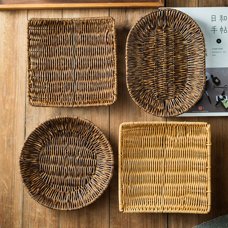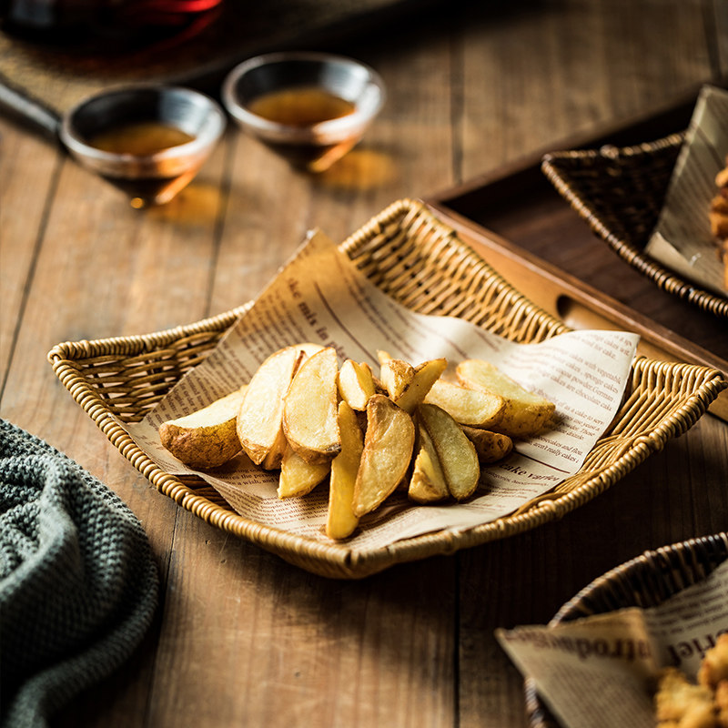 📚 编织盘下午茶薯条小吃拼盘炸鸡小食盘餐盘商用托盘日式竹编盘子