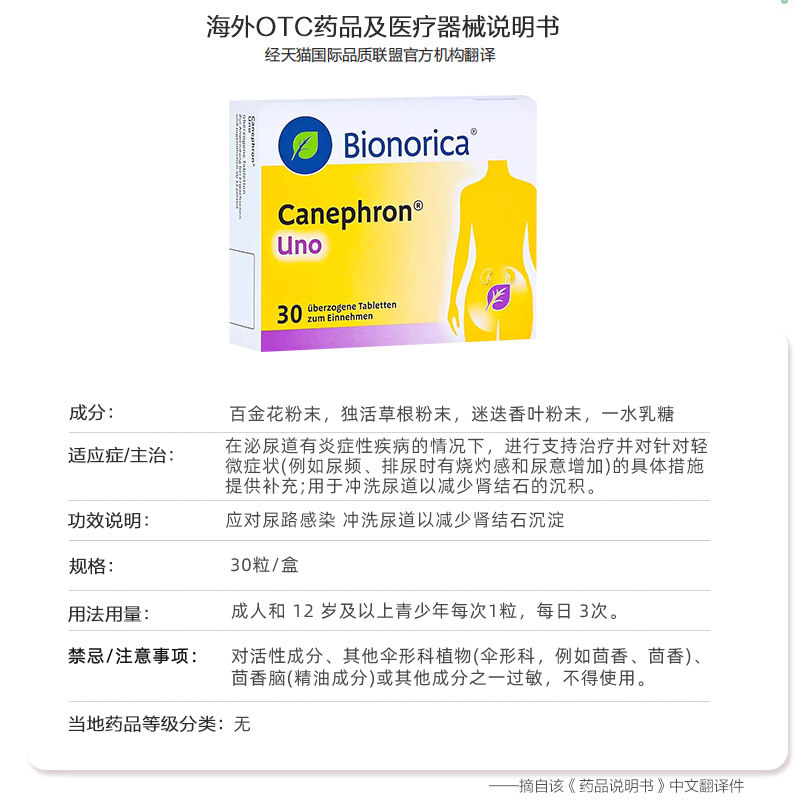 📚 Bionorica加强版尿路感染膀胱炎片30粒进口缓解尿道炎预防急性