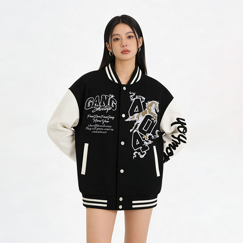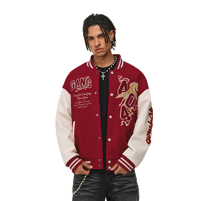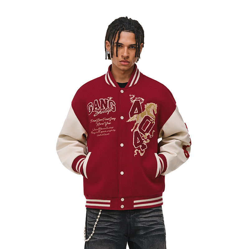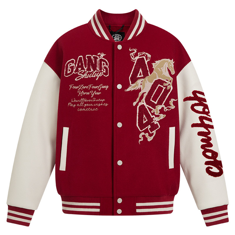 📚 404MOB马年2026夹棉加厚毛巾绣红色棒球服男女美式宽松情侣外套潮
