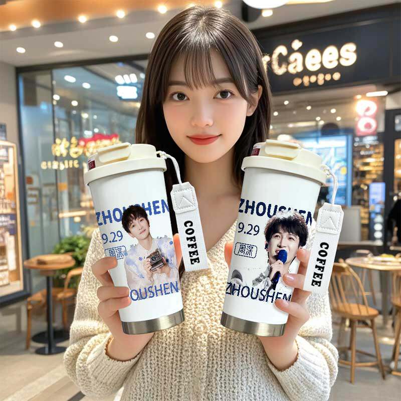 📚 周深周边保温杯应援同款2025新款大容量女生学生不锈钢吸管水杯子