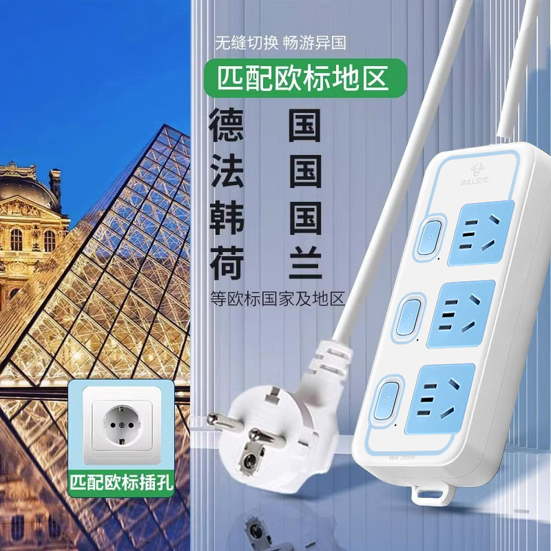 📚 公牛欧标插座转换德标插排韩国转换插头排插欧洲俄罗斯德国接线板