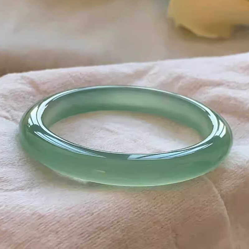 📚 冰种翡翠色手镯女远山黛手镯油青祖母绿玛瑙镯子礼物气质显白