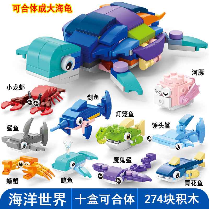 📚 小学生卡通动物恐龙世界变形机甲套装拼装积木益智力玩具儿童礼物