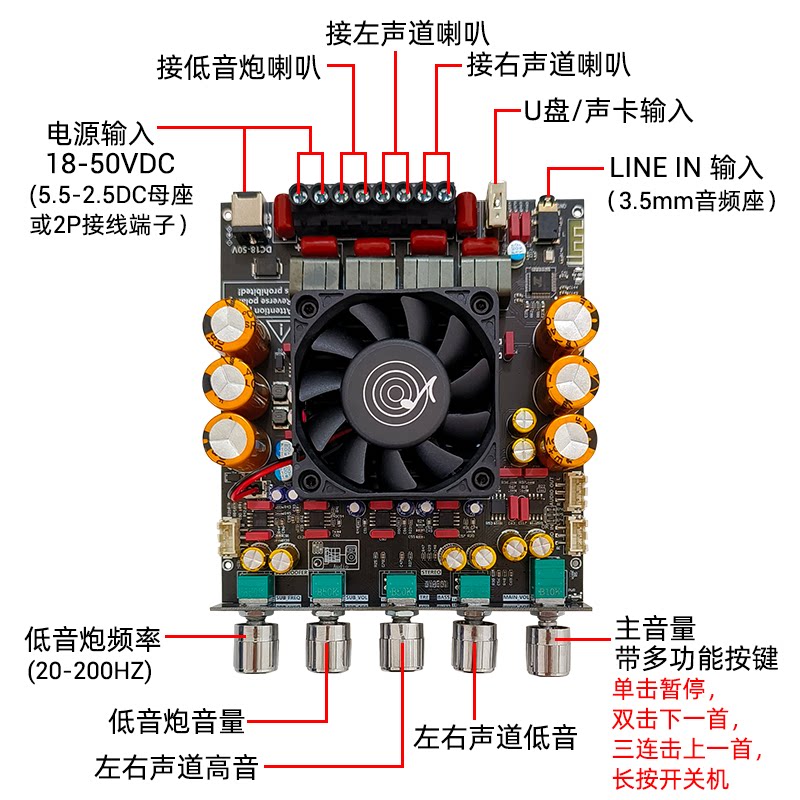 📚 AS21P蓝牙数字功放板2.1声道300W+300W+600W低音炮TPA3255