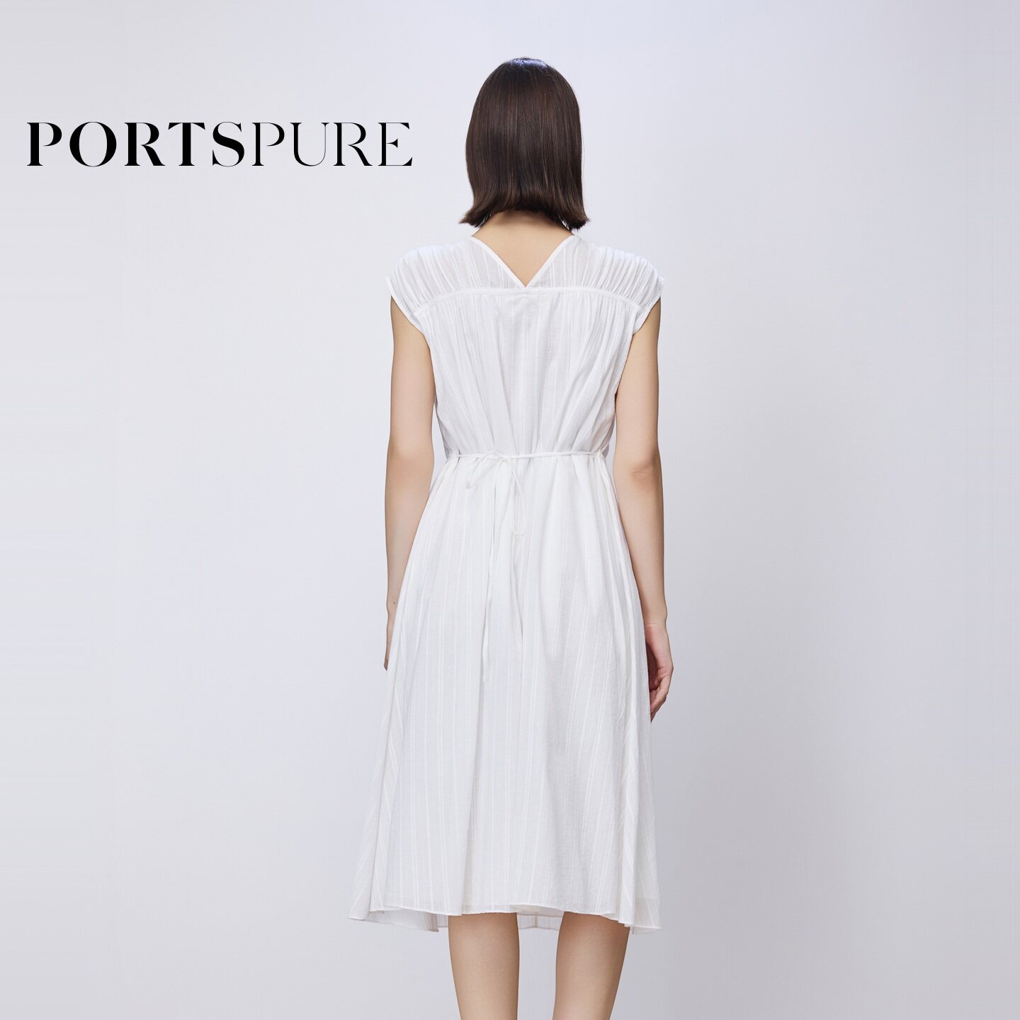 📚 宝姿PORTSPURE女装舒适经典度假肌理感浪漫飞袖连衣裙