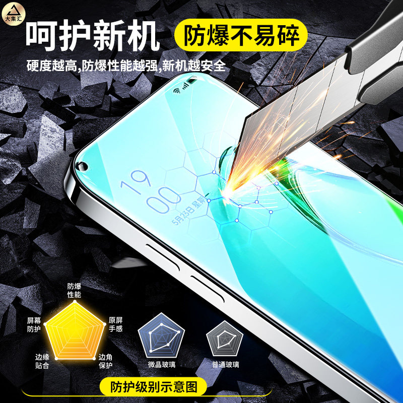 📚 大集汇适用opporeno8钢化膜reno7手机8pro全屏rone6/5防窥oppok10/9无尘仓k9s贴膜4se的oppo+新款5k十防摔10x