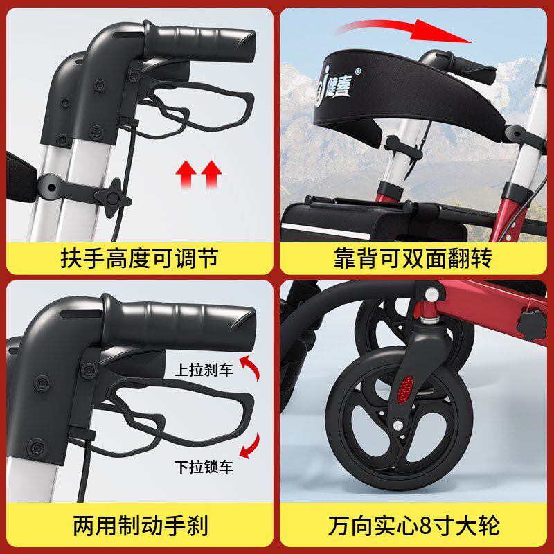 📚 老年购物护理手推车助行老年代步车座椅坐四轮买菜车老手推车