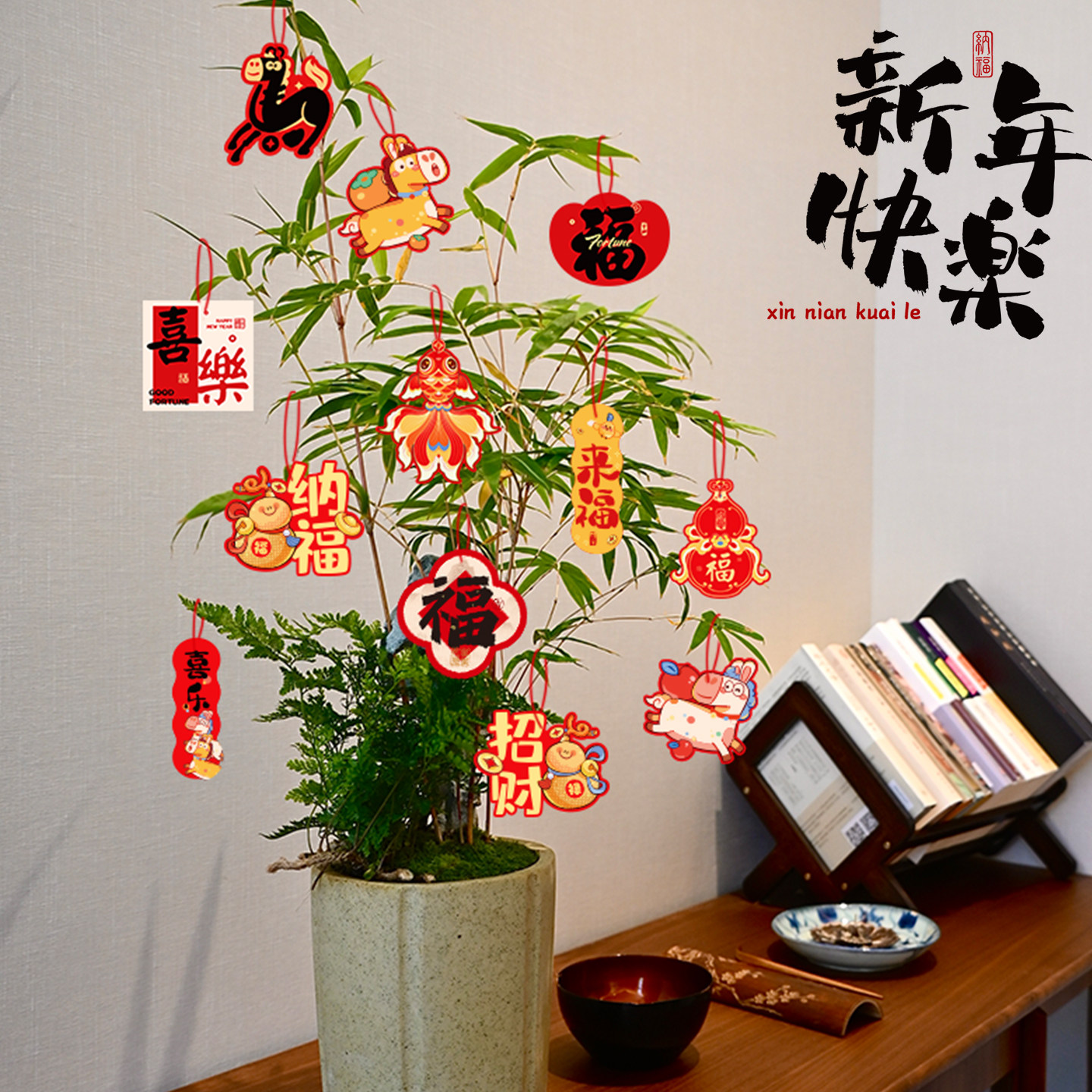 📚 2026新年装饰马年福字小吊卡小灯笼挂饰过年氛围绿植盆景小挂件