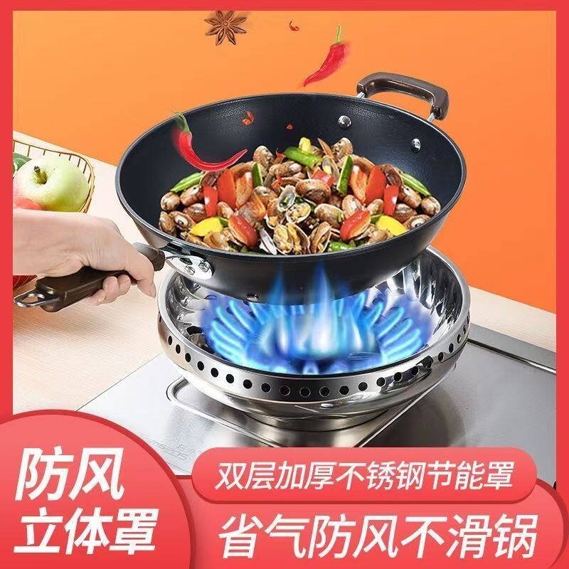 📚 特厚不锈钢双层聚能防风罩家用燃气灶台节能罩火圈煤气炉支架配件