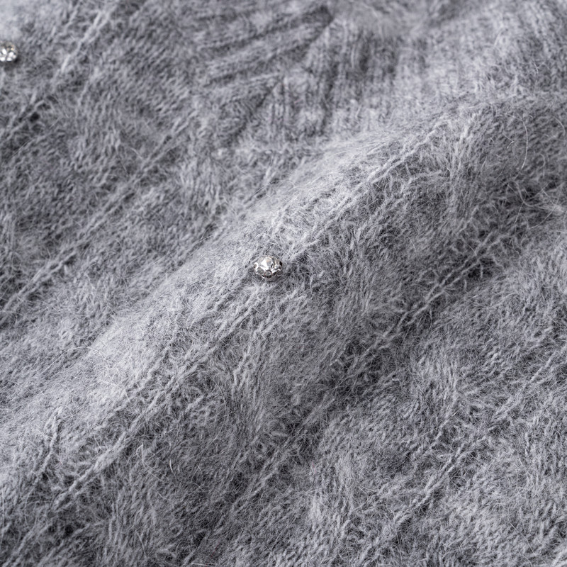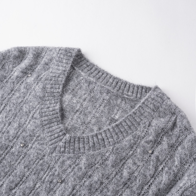 📚 XG雪歌灰色烫钻设计毛针织衫2025冬季新款厚款马海毛套头毛衫女装