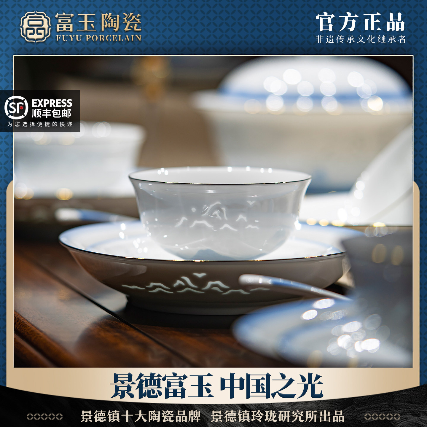 📚 富玉陶瓷景德镇玲珑高温瓷餐具套装家用新中式饭碗高颜值乔迁送礼