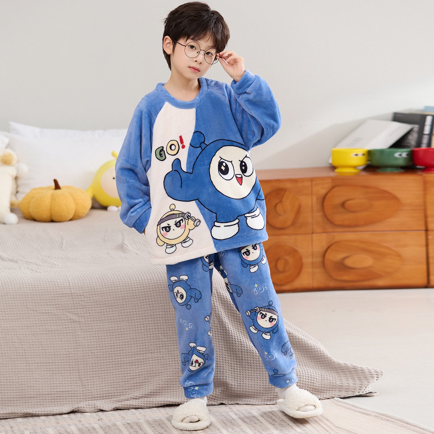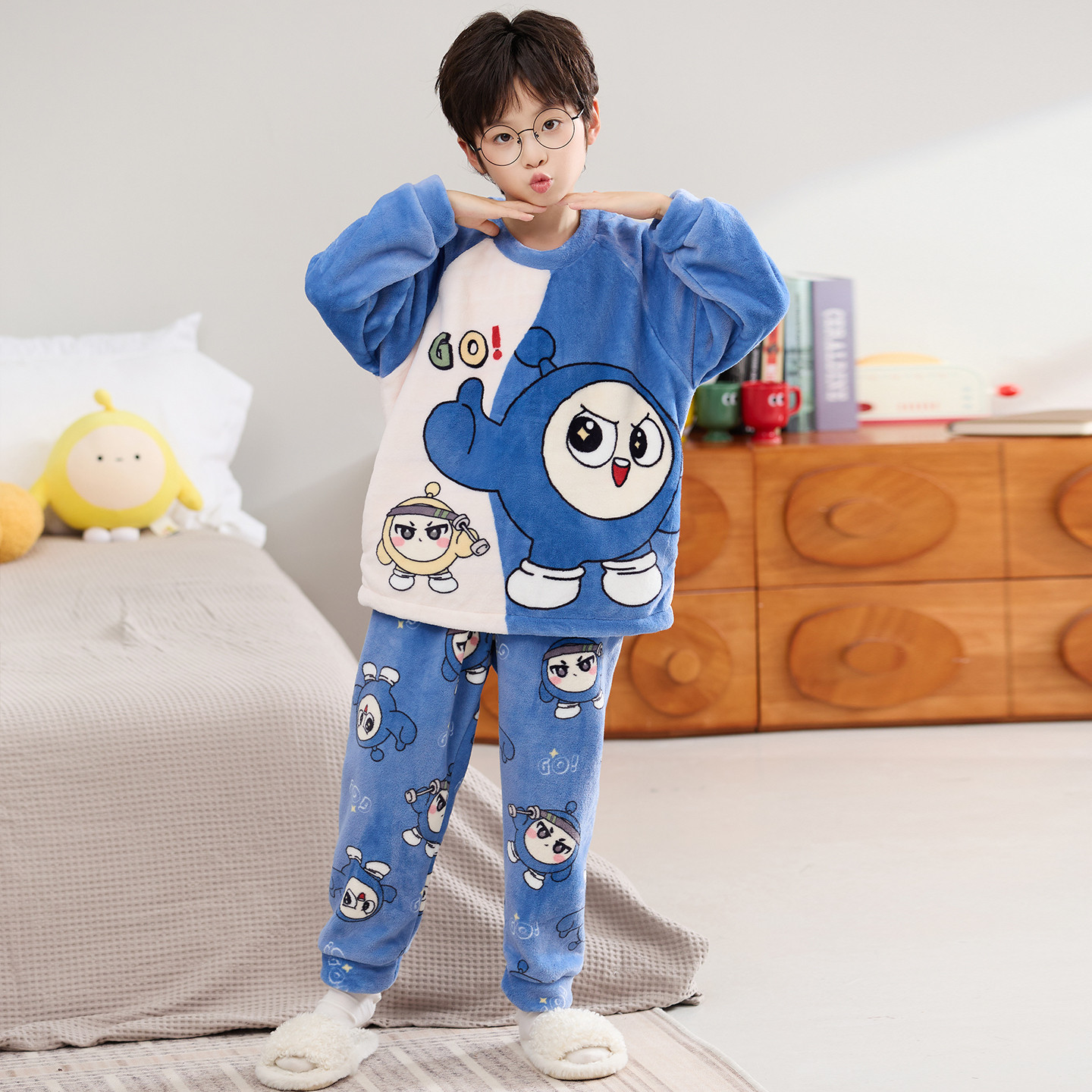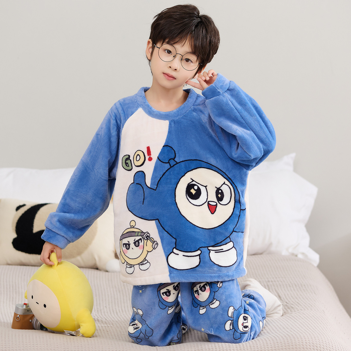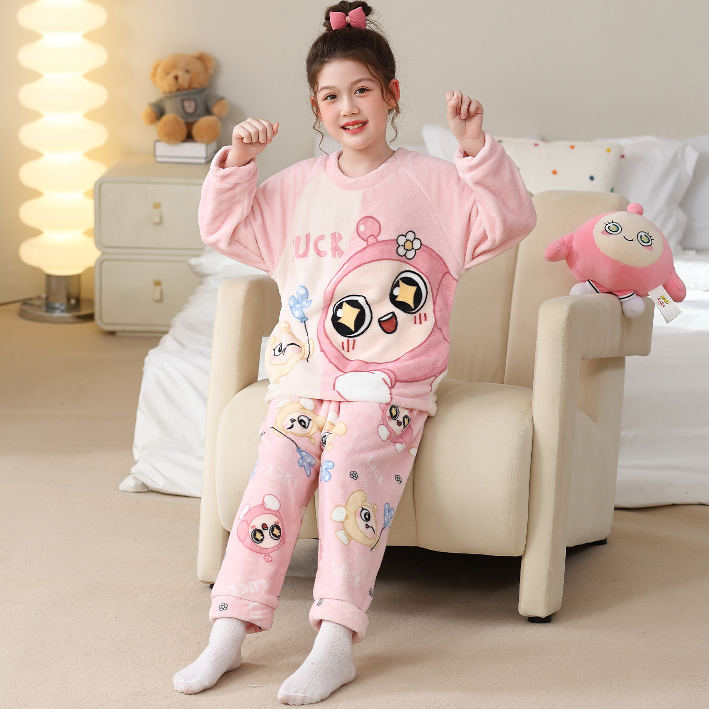 📚 蛋仔女童珊瑚绒睡衣秋冬薄款中大童套装2025新款法兰绒儿童家居服