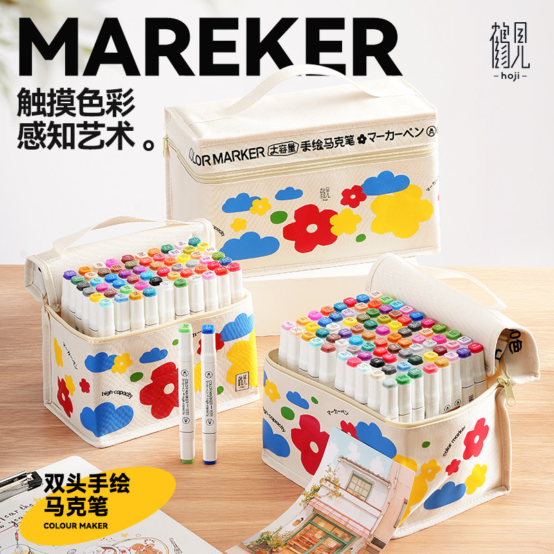 📚 日本hoji鹤见马克笔套装学生美术双头酒精油性动漫设计速干软头马克笔大墨量手绘马克笔