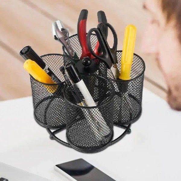 📚 Metal Mesh Hollow Pen Holder Round Utensil Rack Home