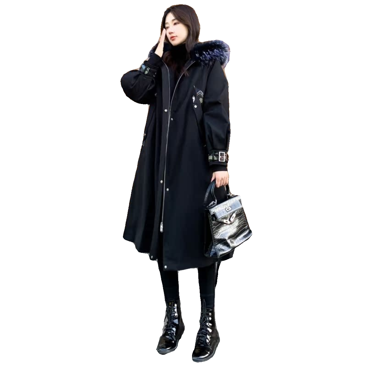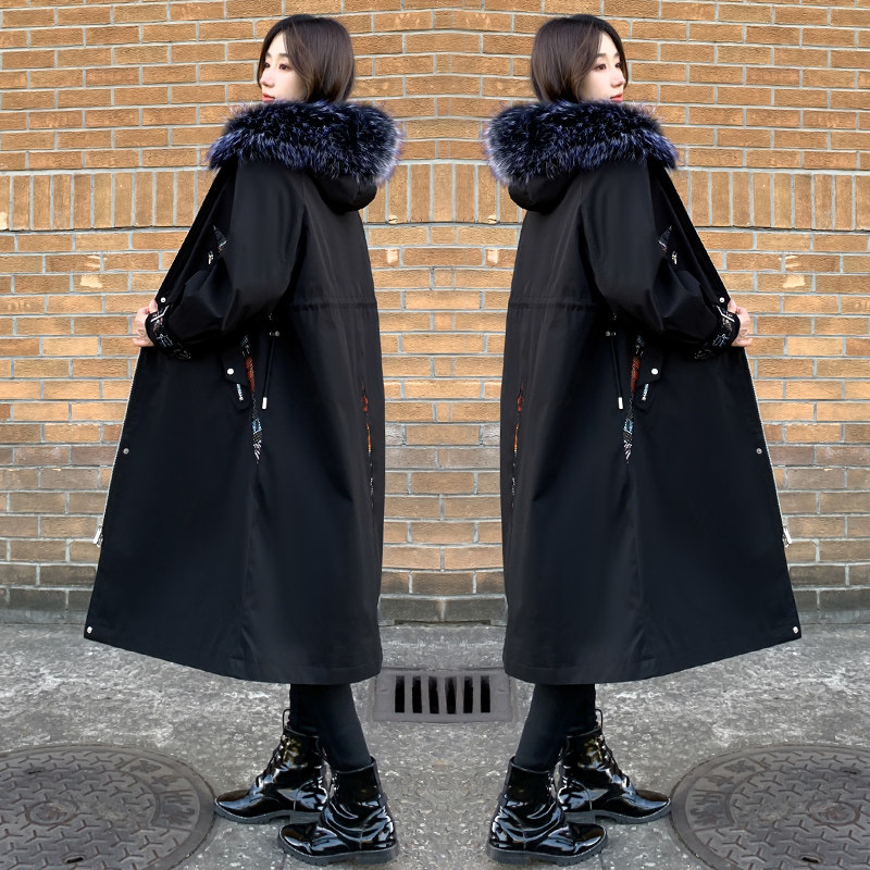 📚 派克服女2025冬新款獭兔毛内胆皮草外套中长款可拆卸貉子毛年轻款