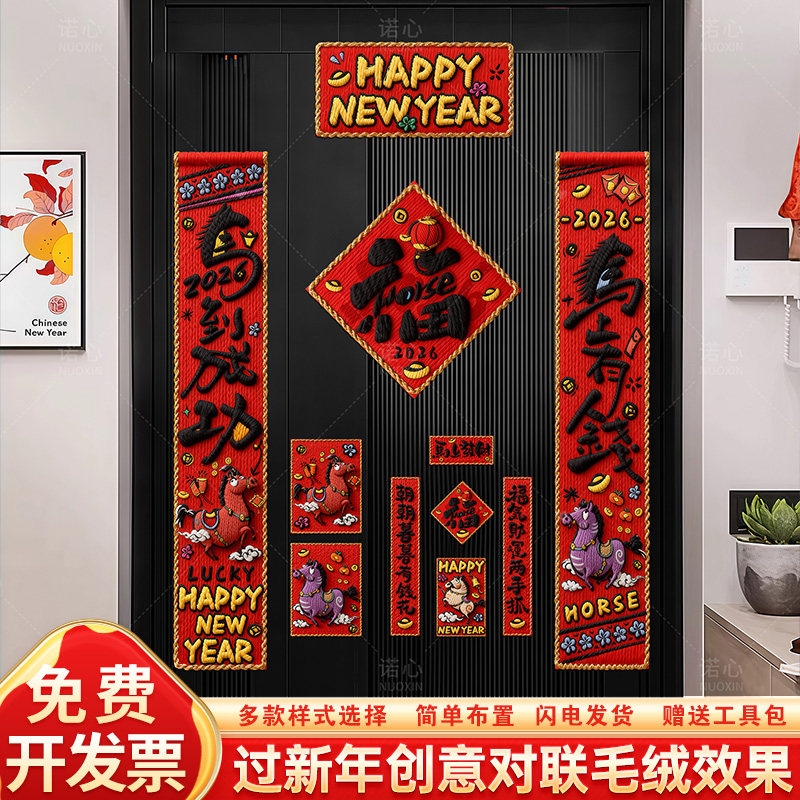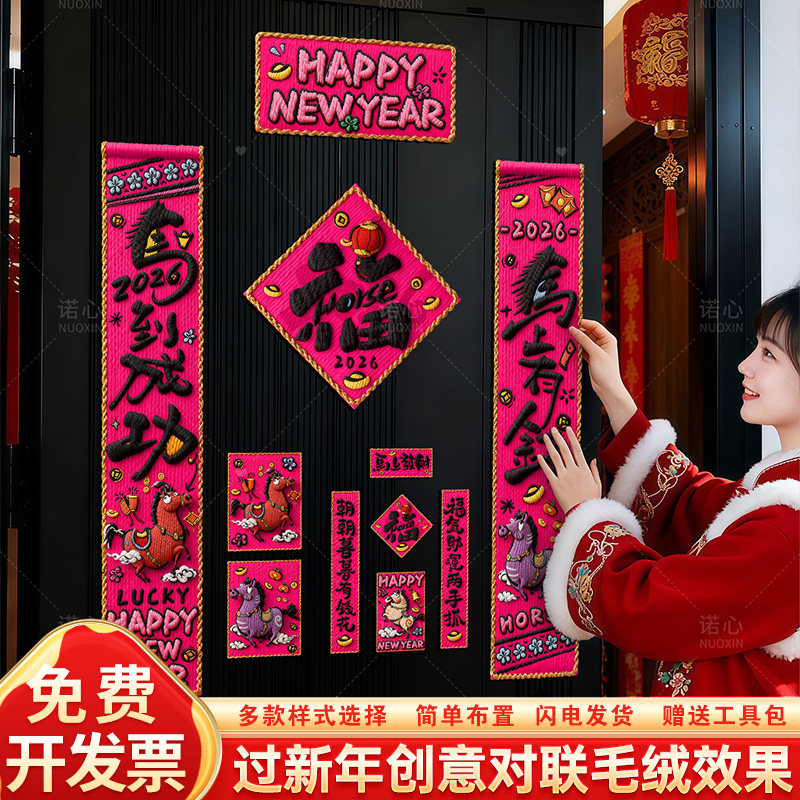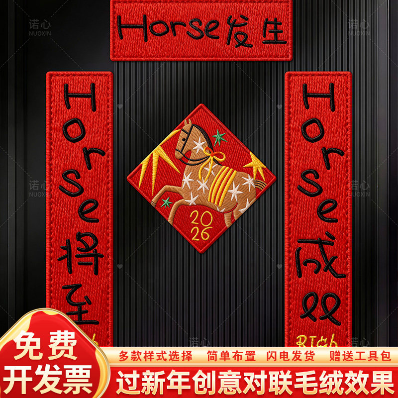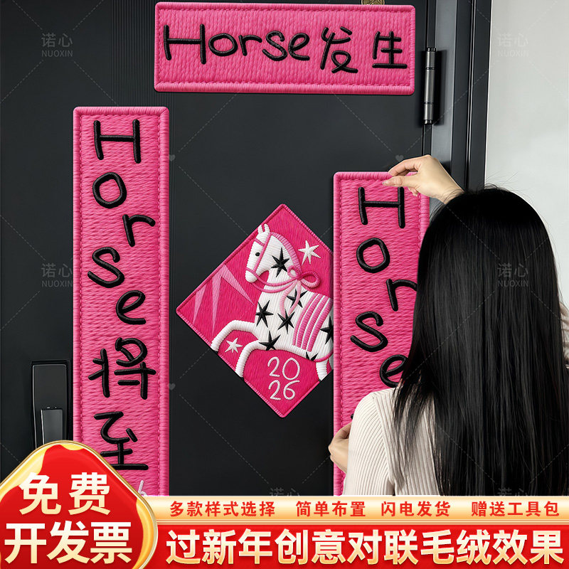 📚 2026马年新款5D刺绣磁吸对联创意Horse发生春节喜庆红装饰办公室