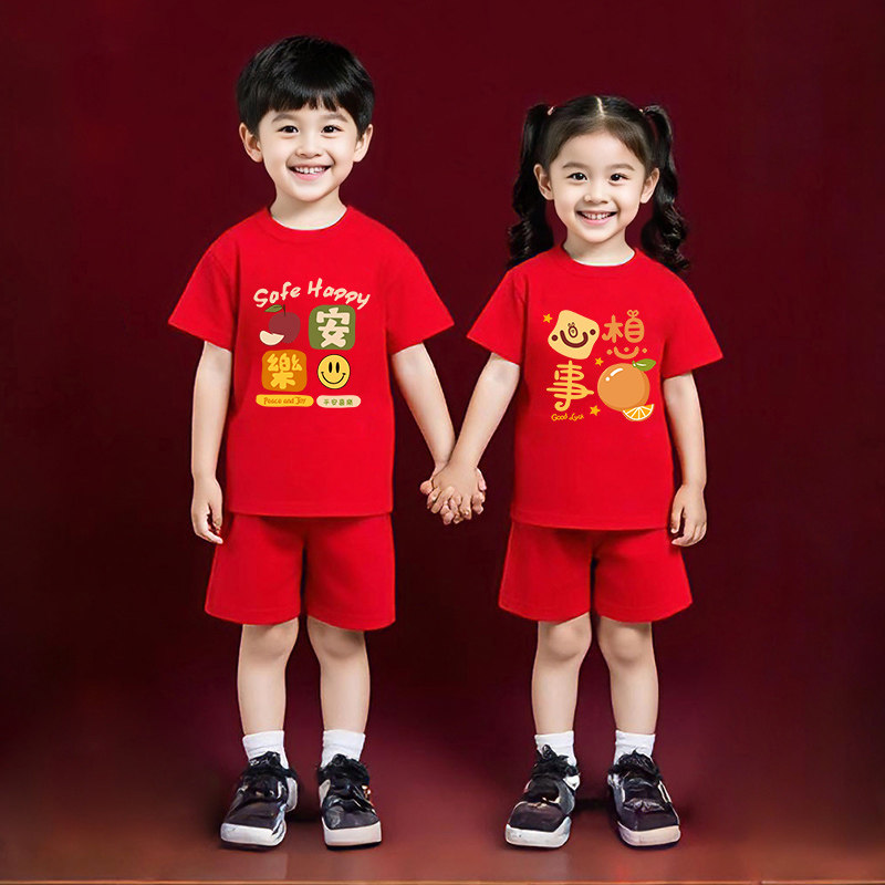 💥萌翻天!儿童红色短袖套装,本命年新气象🎉