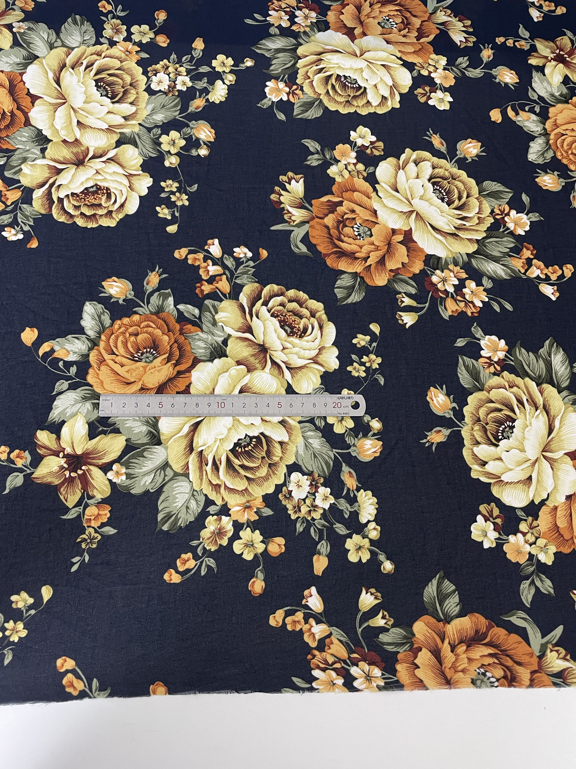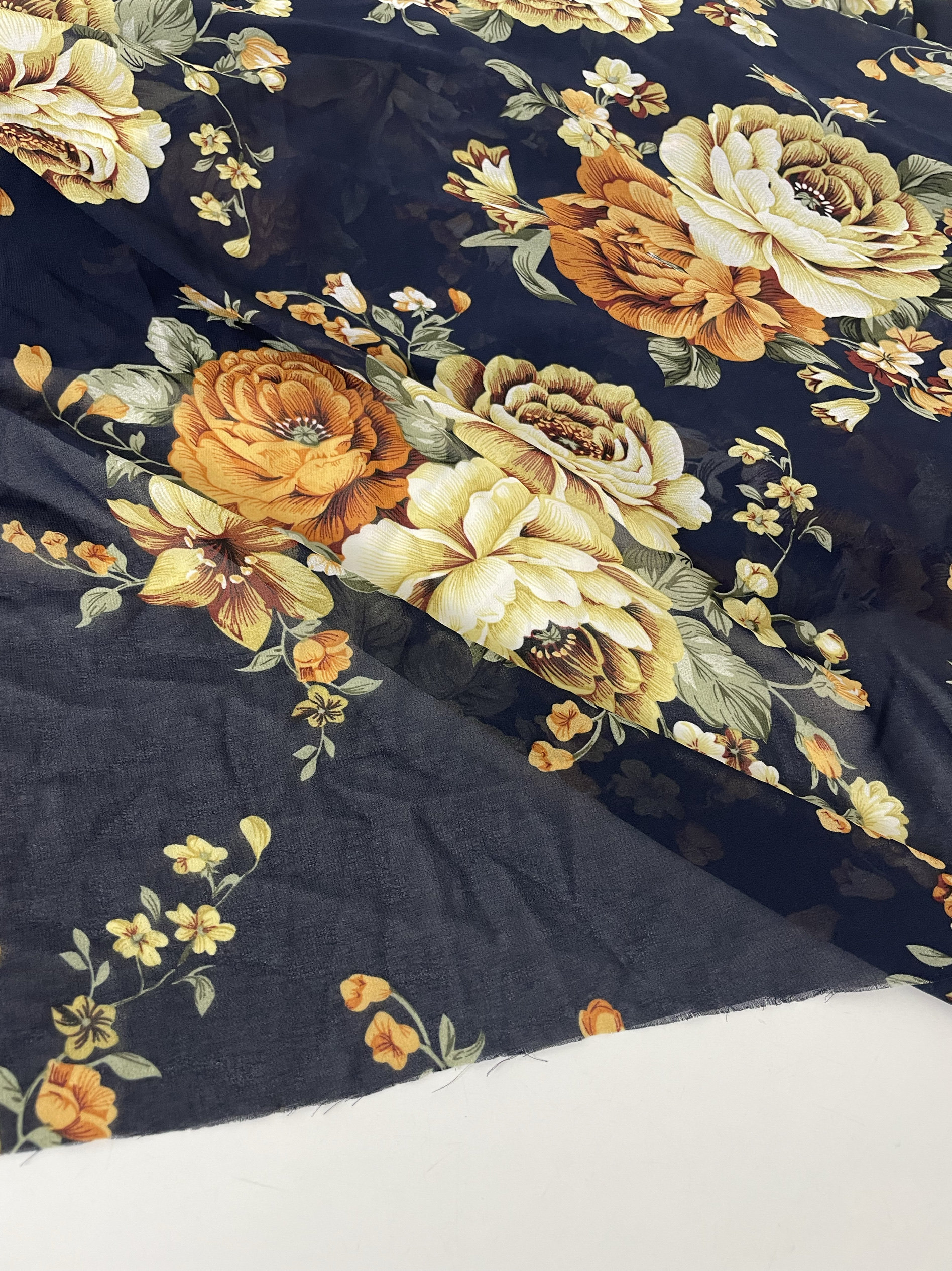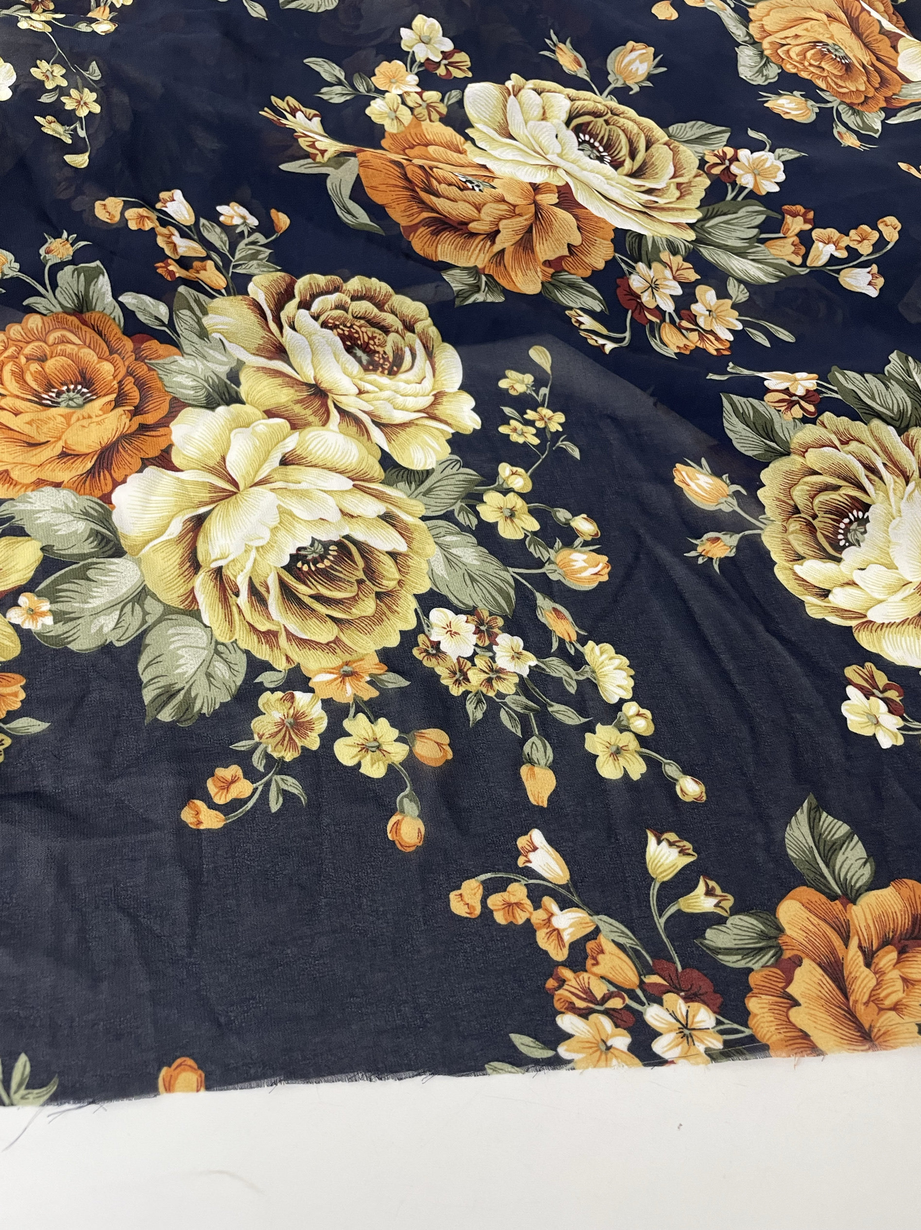 📚 藏青色底大花朵透光雪纺布头夏季女装连衣裙上衣半裙工厂剩余布头