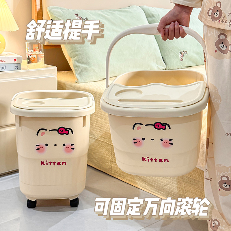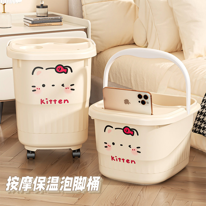 📚 带轮泡脚桶家用过小腿高深女士洗脚盆秋冬保温过膝养生按摩足浴桶